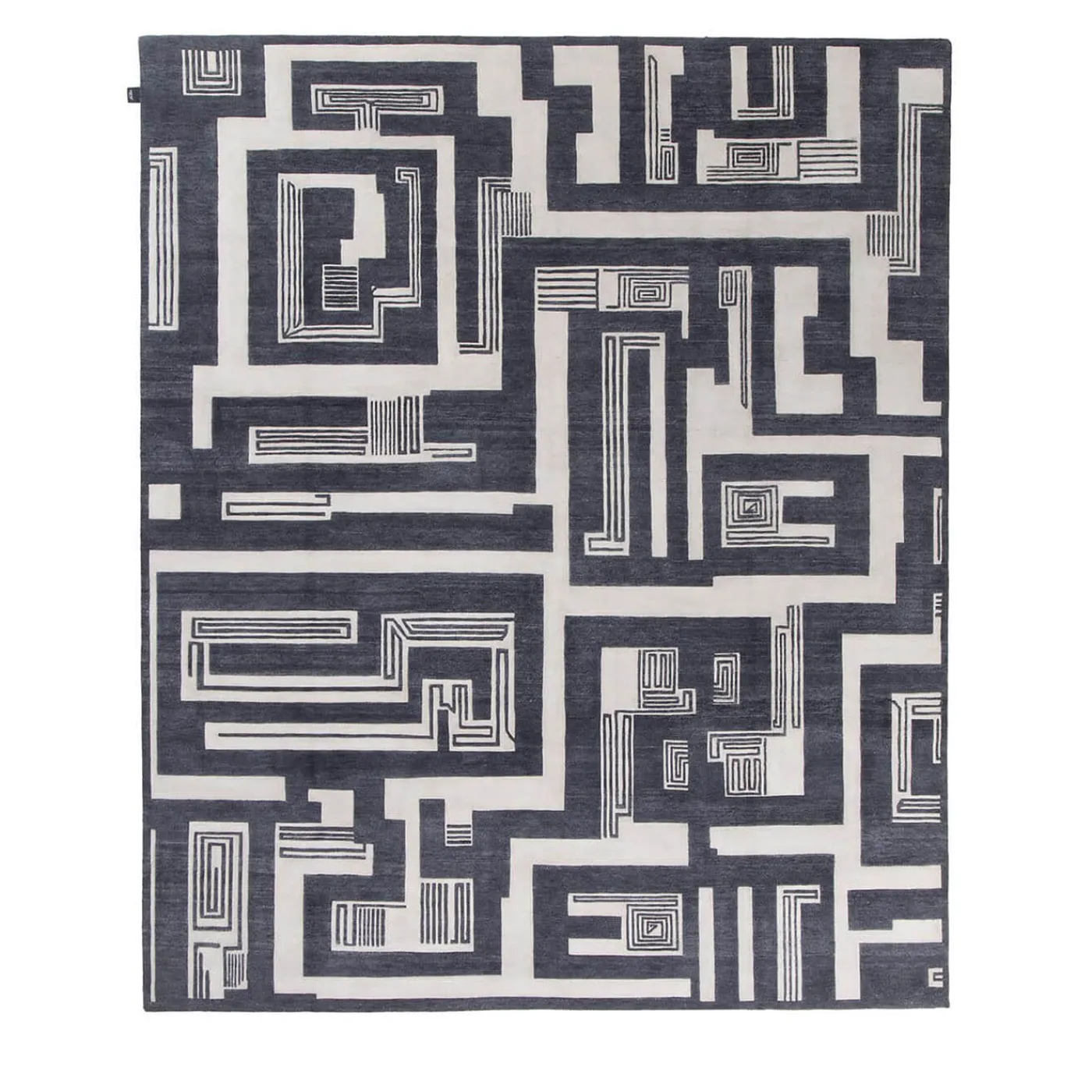 Ispirato a un disegno tessile astratto del designer italiano Fede Cheti, il motivo intricato e intrigante di questo tappeto invita a perdersi in un autentico labirinto, come suggerisce il nome. Sottili linee rosso ruggine che sembrano tracciate con la punta di una penna accentuano il motivo, qui proposto in nero e avorio ma disponibile anche in una versione più sottile che combina beige e avorio. Annodato a mano in India con filati di lana pregiata, ogni tappeto è unico.