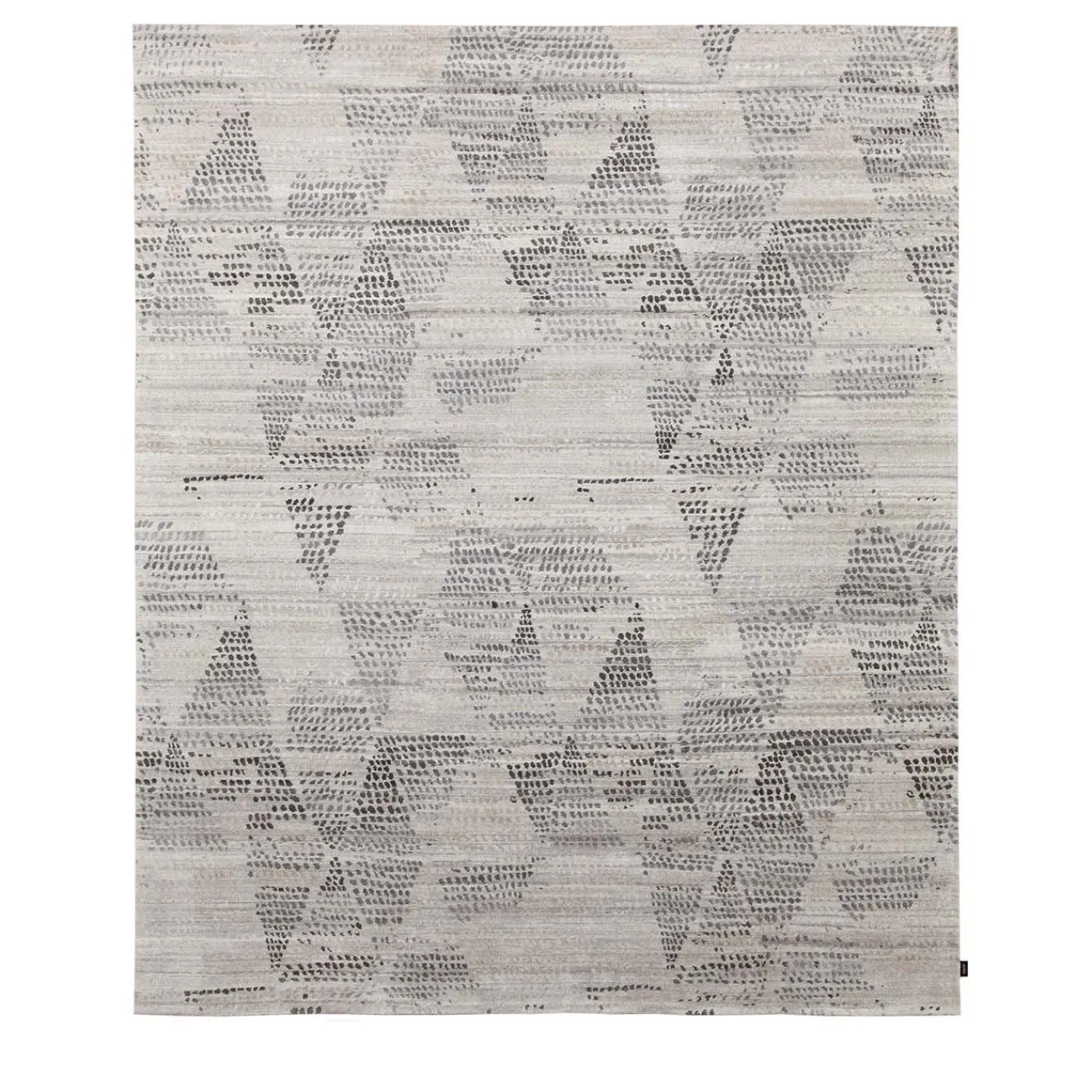 Pangea scava nelle radici della storia, ma nel suo essere “primitiva” solleva riferimenti culturali che già ci appartengono. Realizzata in seta pregiata e lana tibetana cardata a mano, questa collezione di manufatti vanta il raffinato e prezioso vantaggio di essere “reale”. Macchie simili a impronte digitali compongono forme geometriche euclidee che appaiono e svaniscono in un disegno ripetuto. Il tappeto (300 x 250 cm) è realizzato in seta di bambù e lana tibetana.