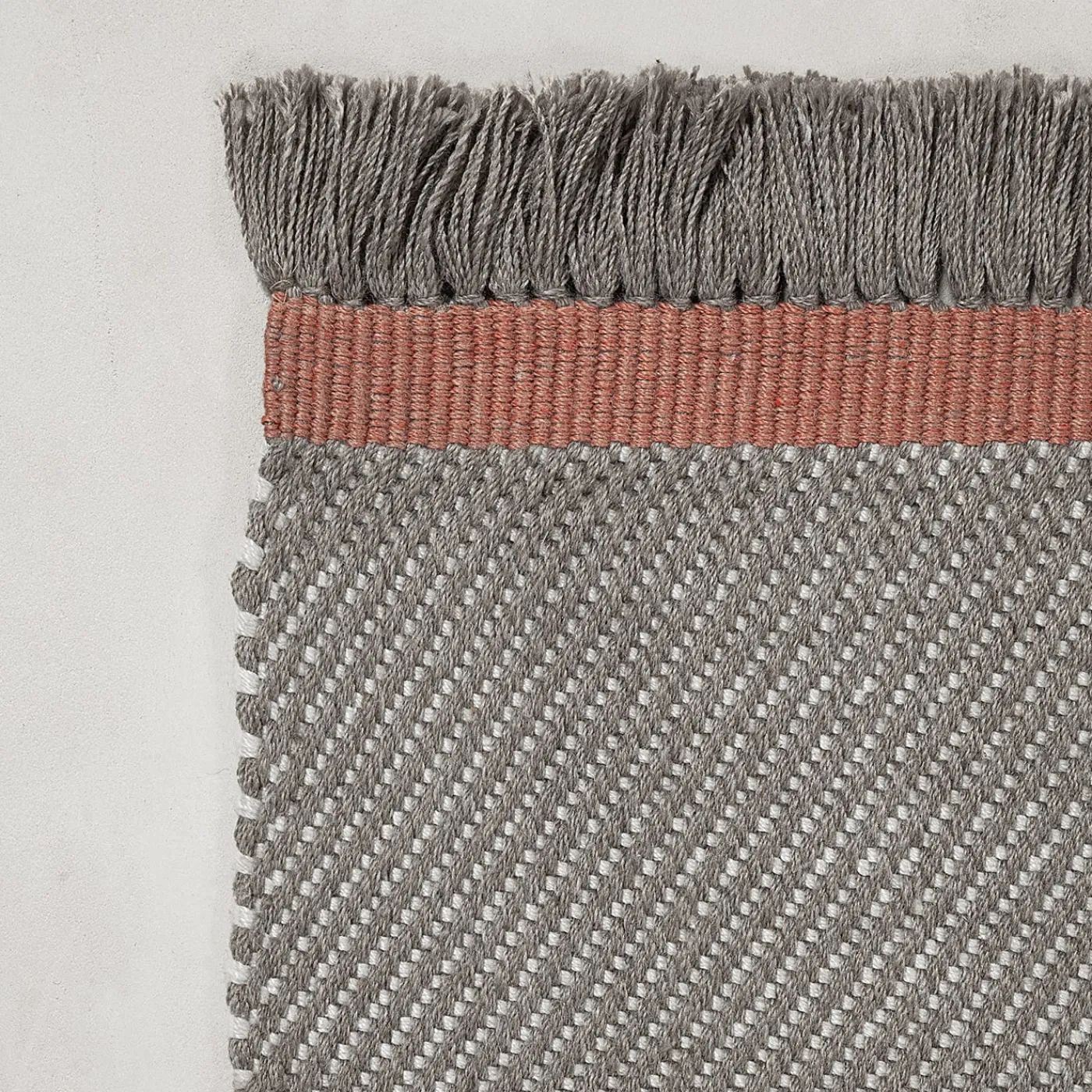 Realizzato a mano con precisione, Sesamo è caratterizzato da un’elegante trama diagonale in un’armoniosa tonalità tortora. Le fasce di contrasto aggiungono un tocco raffinato, sottolineando il suo design strutturato ma morbido. Perfetto complemento per spazi interni ed esterni, la sua composizione equilibrata favorisce un senso di armonia e raffinatezza, mentre le fibre di PET riciclato garantiscono una scelta sostenibile e duratura. Adatto sia per l’esterno che per l’interno.