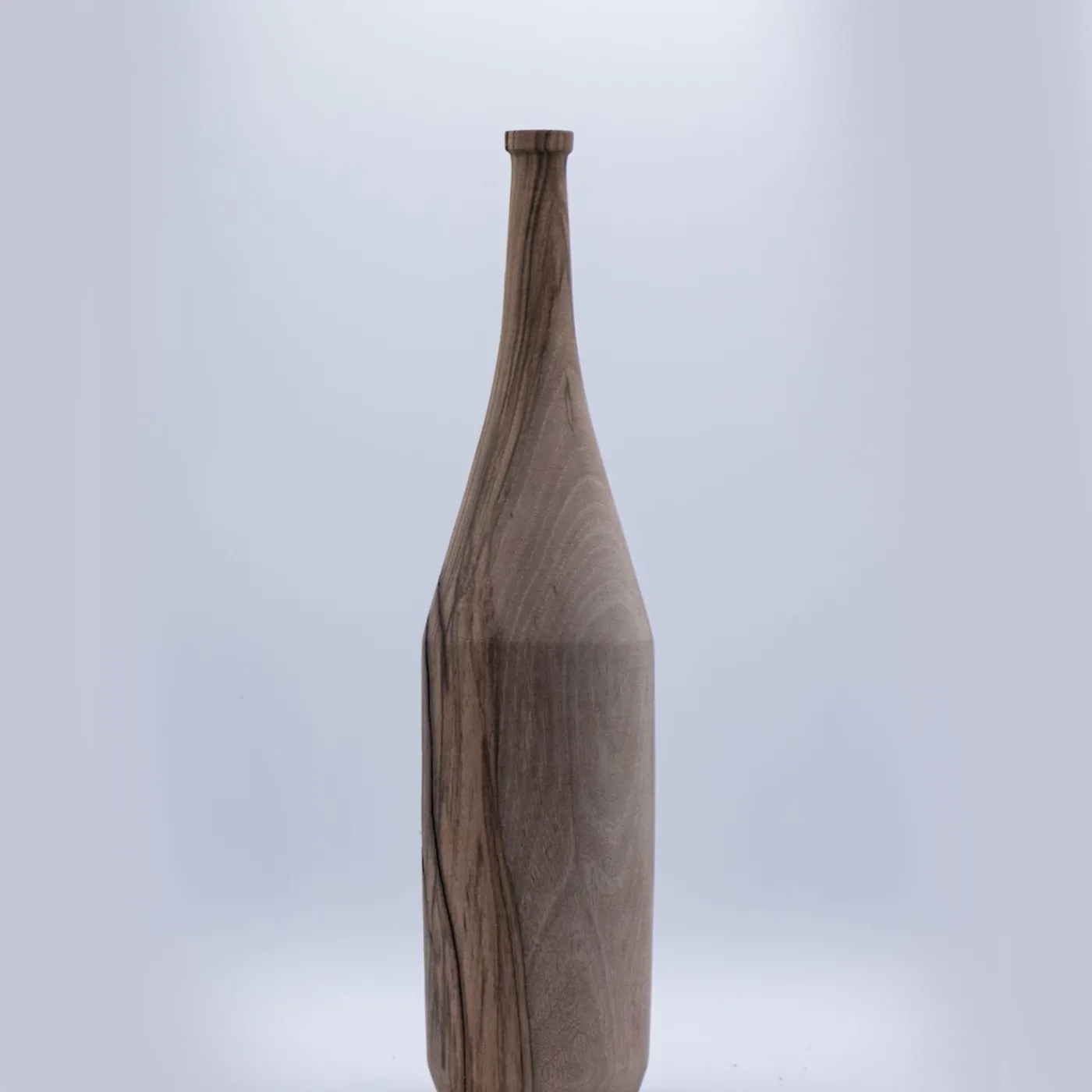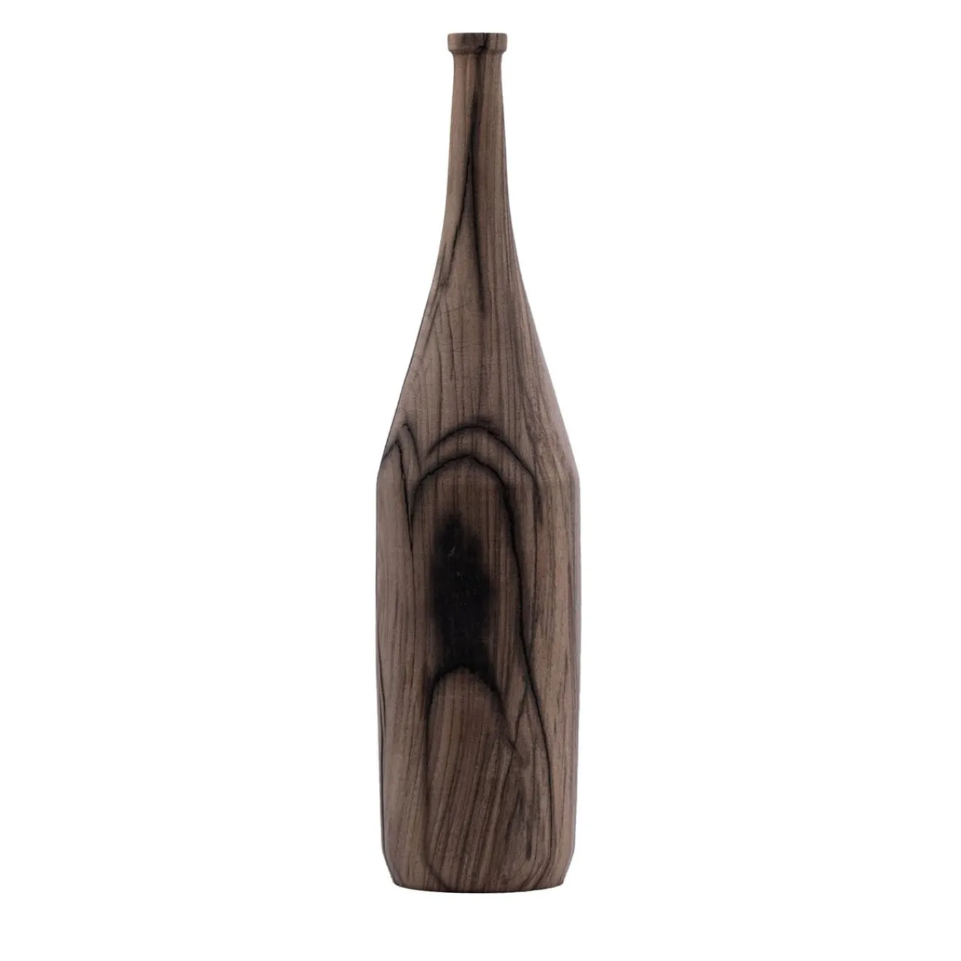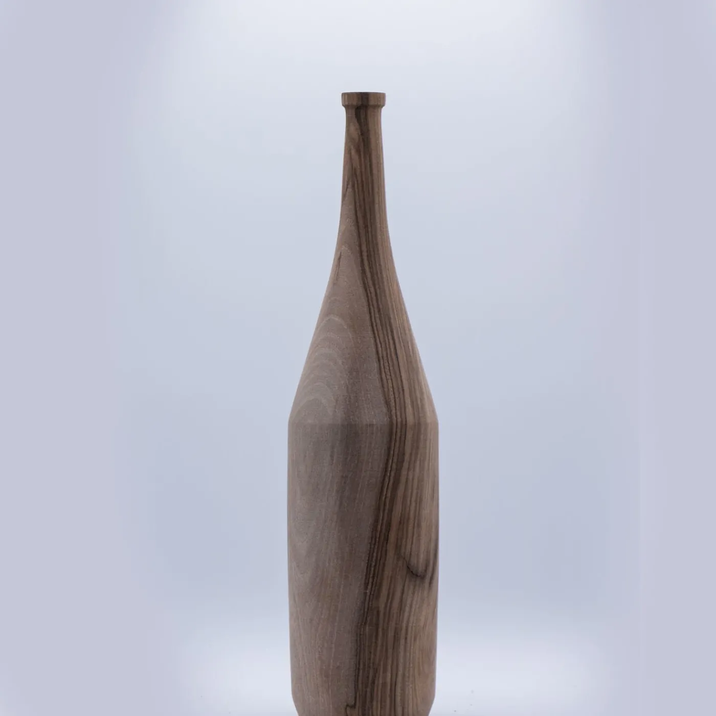 Interpretazione intelligente della classica silhouette della bottiglia, questo pezzo diventerà un elemento di spicco in una casa in stile rustico o contemporaneo. La silhouette alta con collo sottile è realizzata in legno di noce, che presenta un’eccezionale venatura del legno. Il legno è trattato con olio d’oliva per sigillare le sue proprietà naturali e prevenire il decadimento. Non riempire o immergere in acqua, pulire solo con un panno umido.