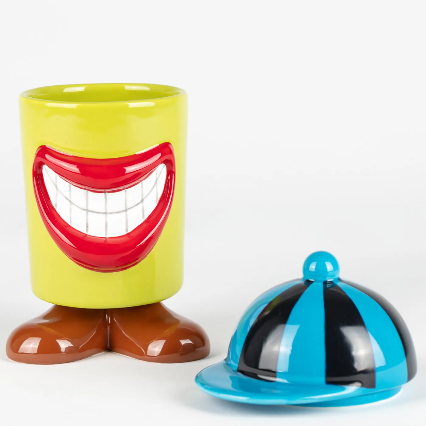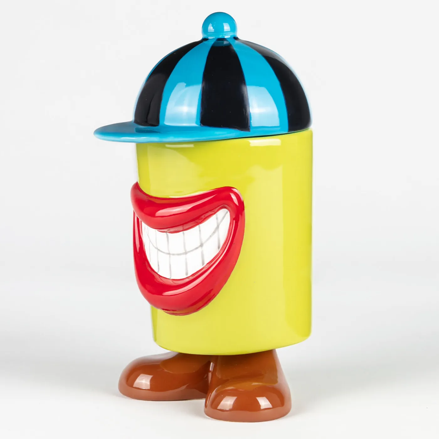 Un sorriso esagerato e un buffo tappo contraddistinguono questo estroso contenitore multiuso, una statuetta colorata ispirata a un classico giocattolo vintage. Realizzato in ceramica e dipinto a mano da esperti artigiani, Ugo è una creazione iconica di Andrea Maestri e sarà un accento singolare in un interno contemporaneo. Disponibile anche nella versione bianca o dorata, contattare il Concierge per i dettagli.
