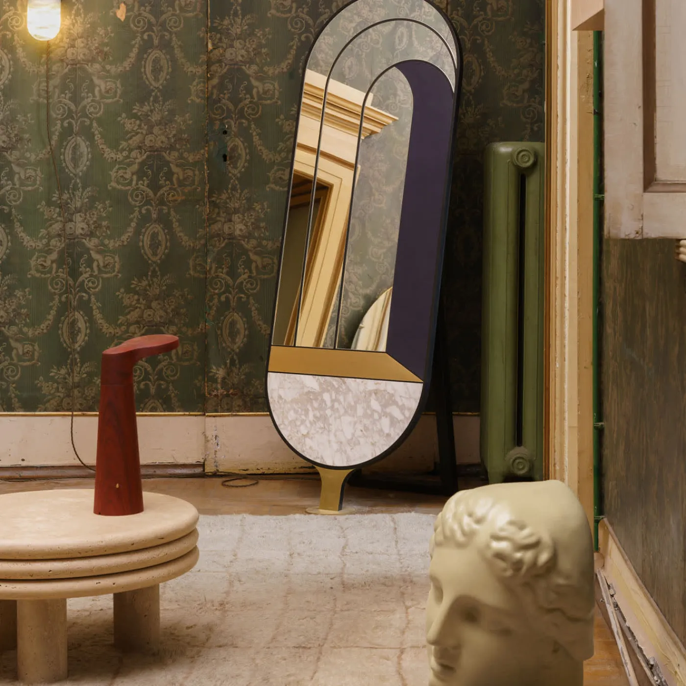 Una porta che conduce a infinite altre. Le geometrie che compongono gli specchi della collezione “Itaca” invitano a un viaggio senza meta, o meglio dove gli incontri, le esperienze e le avventure sono essi stessi la meta. Combinando le armoniose venature del marmo Calacatta con la morbidezza della vera pelle blu e la lucentezza opaca dell’ottone spazzolato, questo splendido specchio da parete simboleggia un viaggio attraverso infinite porte.
