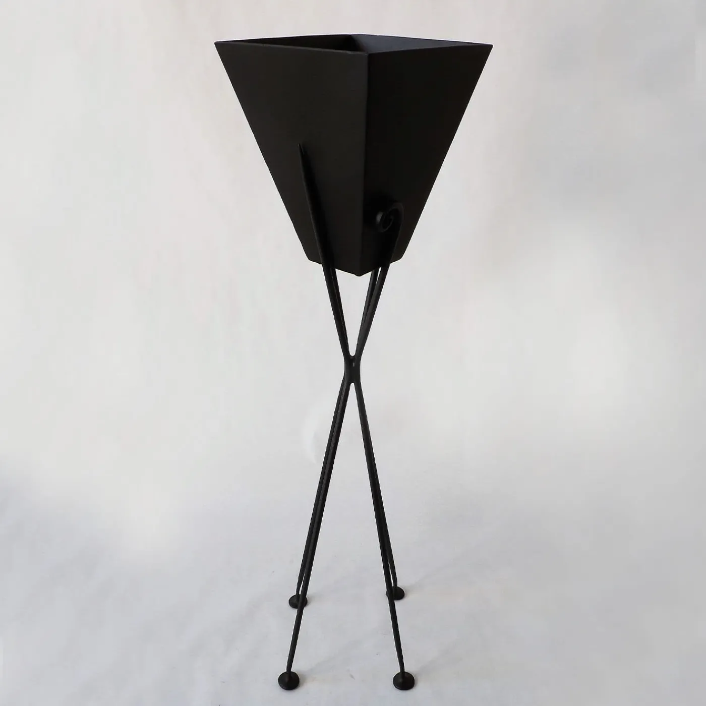 Progettato in collaborazione con l’architetto sardo Roberto Virdis, questo piedistallo in metallo nero con vaso sfoggia un’eleganza minimalista. Con un’altezza di 82 cm, la sua finitura laccata nera opaca e la sua forma slanciata creano un impatto visivo raffinato. Il design dinamico delle gambe intrecciate aggiunge carattere moderno e stabilità. Ideale per esporre fiori o accenti decorativi, questo pezzo infonde agli spazi una raffinatezza contemporanea, fondendo collaborazione artistica e stile funzionale.