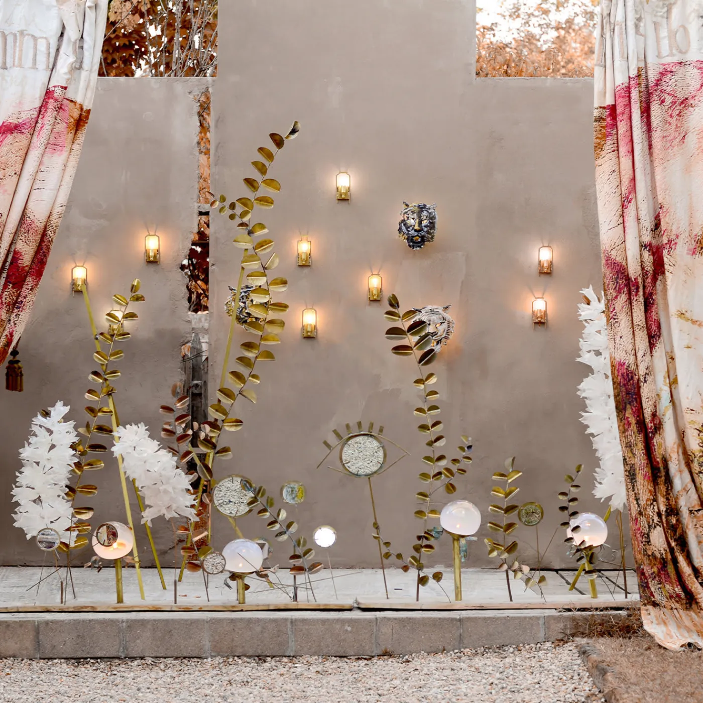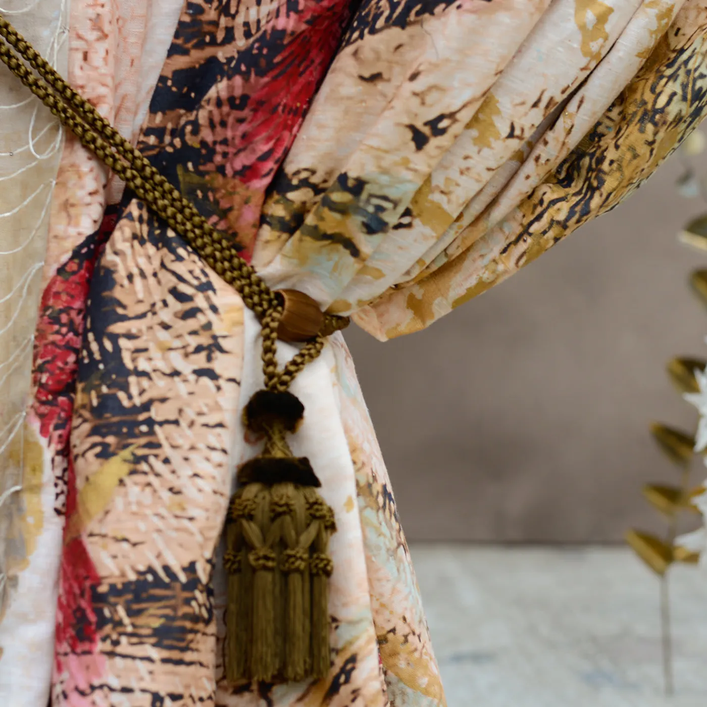 Aggiungete un tocco unico alle vostre pareti con questa affascinante opera d’arte originale che vi trasporterà in terre esotiche. Parte della scena I de “Il grande felino”, questa tenda dittico è basata su un disegno originale stampato in alta definizione su puro lino con fodera in raso di viscosa. Il disegno presenta una tigre rifinita a mano con le parole ricamate “immagina” sul pannello sinistro e “l’impossibile” su quello destro. Gli occhielli per appenderlo sono in ottone forgiato a mano.