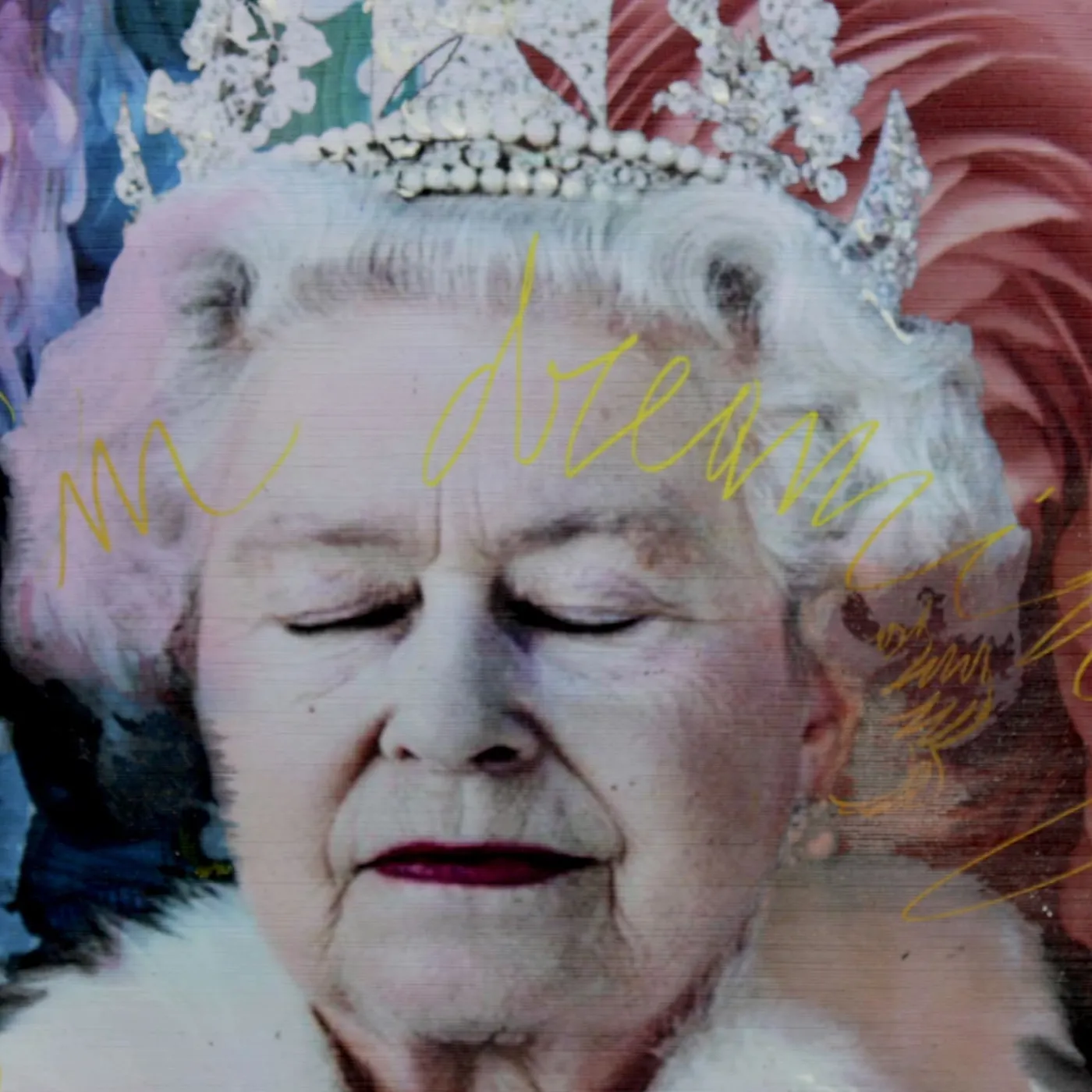 Unico e glamour, questo magnifico arazzo diventerà un affascinante punto focale in qualsiasi interno. Un ritratto eclettico e vintage della Regina Elisabetta II contraddistingue la sua superficie in tessuto stampato, ornata da dettagli dipinti a mano con colori acrilici. Opera d’arte sublime in edizione limitata, è incorniciata su una tela di legno grezza e può presentare leggere variazioni dovute alla sua natura artigianale.