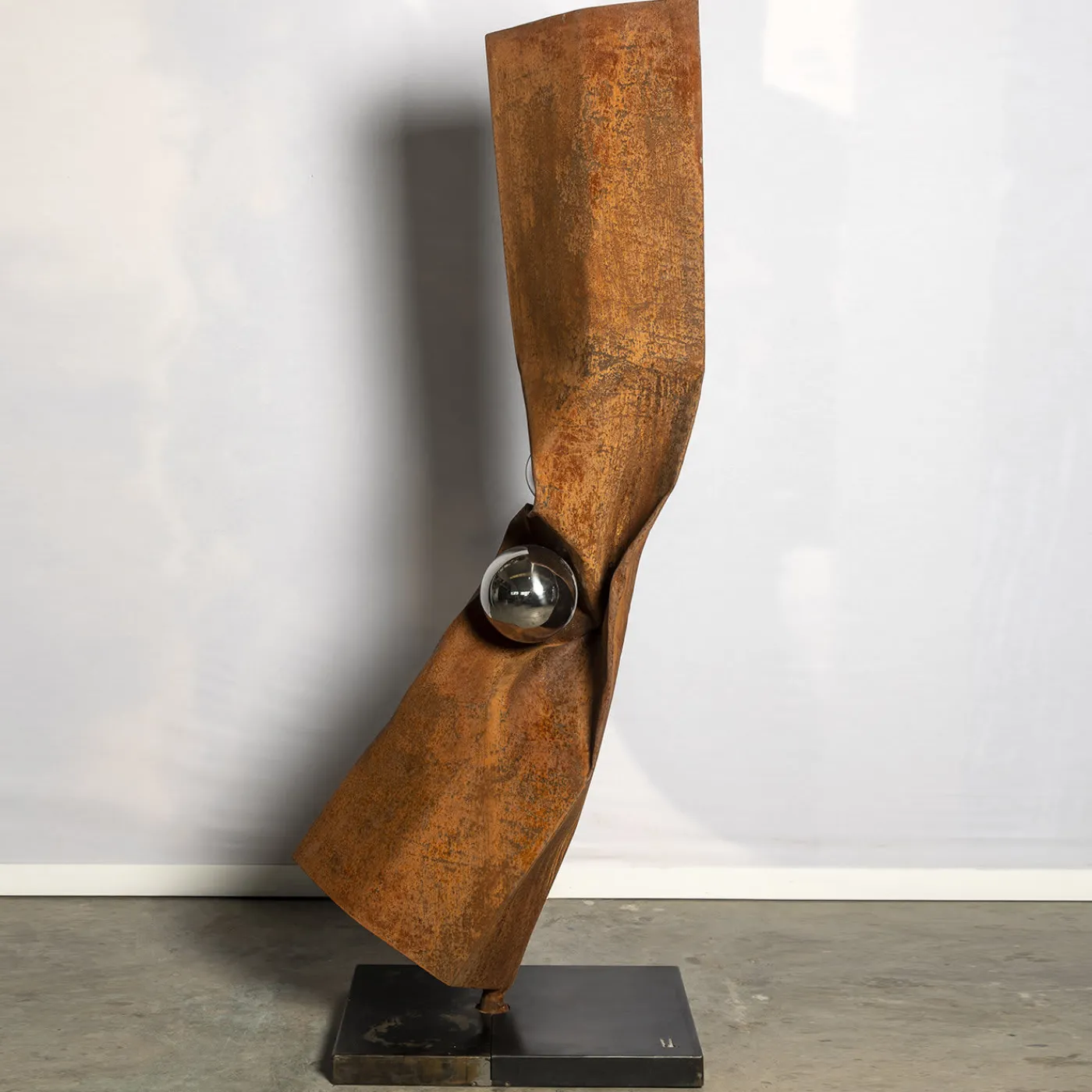 La scultura Schegge da Cielo è un’attenta giustapposizione delle molteplici forme dell’acciaio, con acciaio grezzo e usurato dalle intemperie e acciaio inossidabile lucido. La statua, unica nel suo genere, può essere esposta all’esterno su un basamento di cemento o all’interno su una base personalizzata, venduta separatamente.