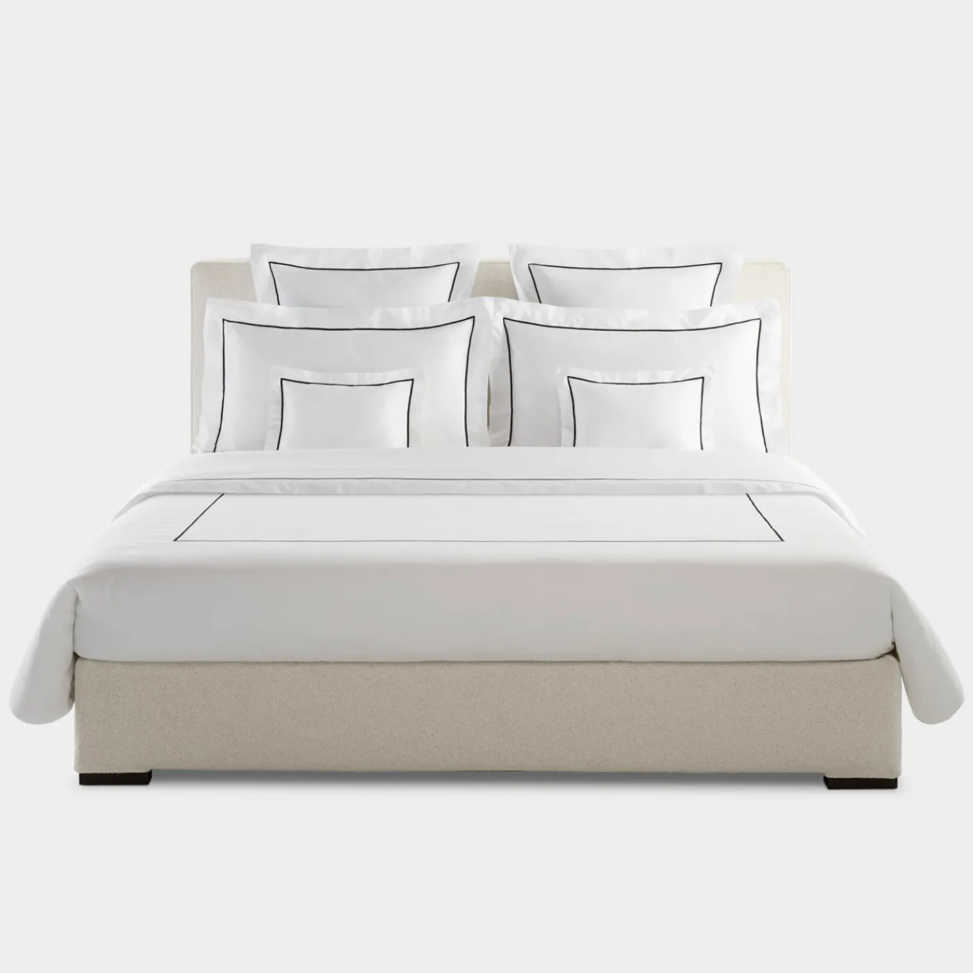 Il set BACCHETTA comprende un copripiumino king size con chiusura a bottoni, un lenzuolo elasticizzato e due federe decorate con un bordo a contrasto che incornicia i bordi con precisione architettonica. Realizzato in cotone satinato con una densità di 300 fili, il set offre un design minimalista e contemporaneo arricchito da opzioni di ricamo personalizzabili in oltre 100 colori. Disponibile in diverse scelte di tessuto e dimensioni, il set fornisce un lusso su misura con un focus su eleganza raffinata e versatilità. Si prega di contattare il Concierge per ulteriori informazioni.