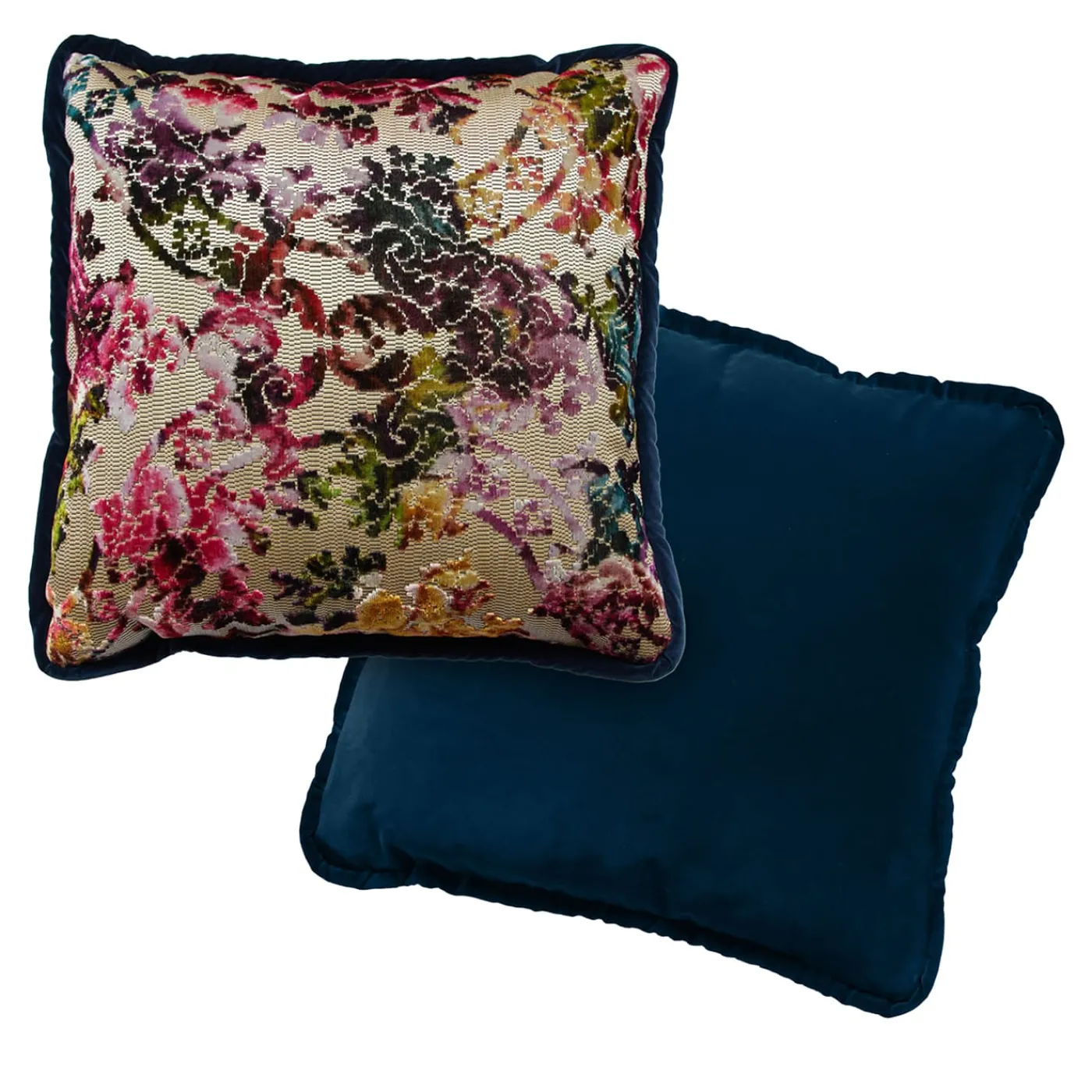 Bicolore per una doppia gioia. Per un tocco di lusso in più, gli amanti della decorazione potranno godere di un audace tocco di colore per rendere il loro salotto molto più speciale. Questa deliziosa combinazione di velluto a fantasia floreale e velluto felpato blu notte riscalderà il cuore e gli interni di chiunque. Tutti i materiali utilizzati sono al 100% naturali e biodegradabili. Il rivestimento è reversibile e può essere utilizzato con una fantasia o una tinta unita.