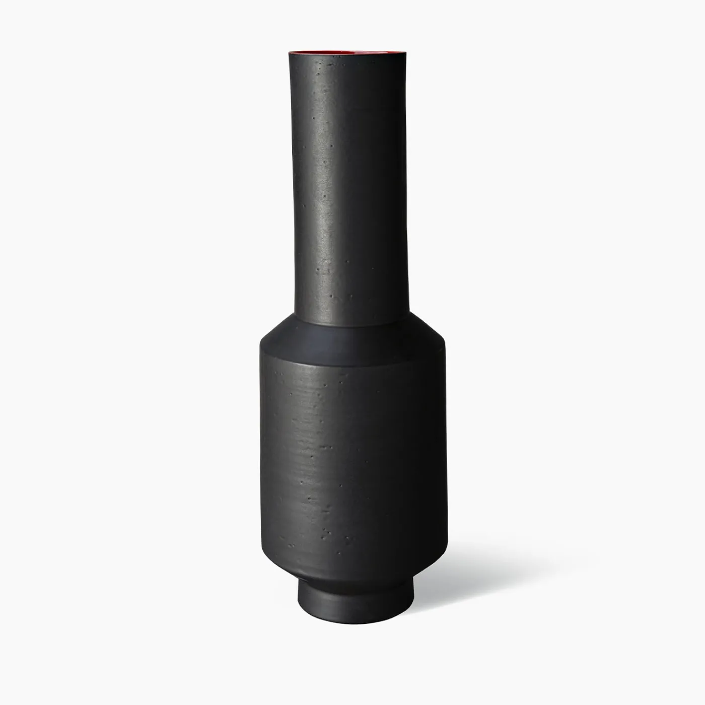 Questo vaso in ceramica, che è allo stesso tempo un pezzo decorativo e un recipiente funzionale per esporre fiori e rami a stelo lungo, fa parte di una serie limitata di 99 pezzi disegnati da Arik Levy George nell’ambito della Tribe Collection. Tornita al tornio con argilla refrattaria bianca, la silhouette geometrica vanta una finitura a smalto bicolore, nero opaco all’esterno e rosso vivo all’interno, che esalta le proporzioni audaci degli elementi cilindrici che formano una forma stilizzata di bottiglia.