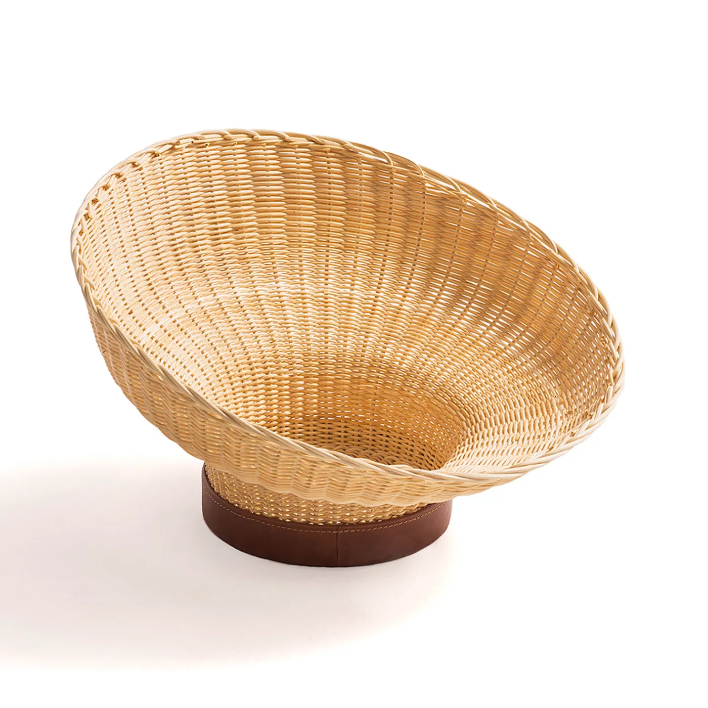 Mawa è un elegante contenitore e centrotavola dalle linee semplici e raffinate, realizzato in rattan intrecciato e arricchito da una base in pelle. Ispirato alle forme organiche, reinterpreta il classico cesto di vimini intrecciato. La forma asimmetrica di Mawa, ottenuta attraverso un impegnativo processo di lavorazione a mano, e la fascia in pelle alla base ne fanno un pezzo unico e prezioso.