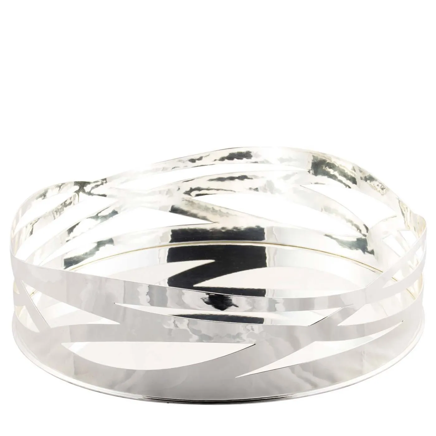 Eccezionalmente realizzato a mano, questo splendido centrotavola placcato in argento è definito da una sottile eleganza e da linee dinamiche e slanciate. Caratterizzato da una brillante lucentezza, questo centrotavola rotondo della serie Onde è placcato in argento con un bordo alto composto da una serie di strisce ondulate che formano un elegante disegno a taglio che ricorda le onde del mare. Questo pezzo squisito rivela una sensibilità moderna e una funzionalità che accrescerà il fascino di qualsiasi interno.