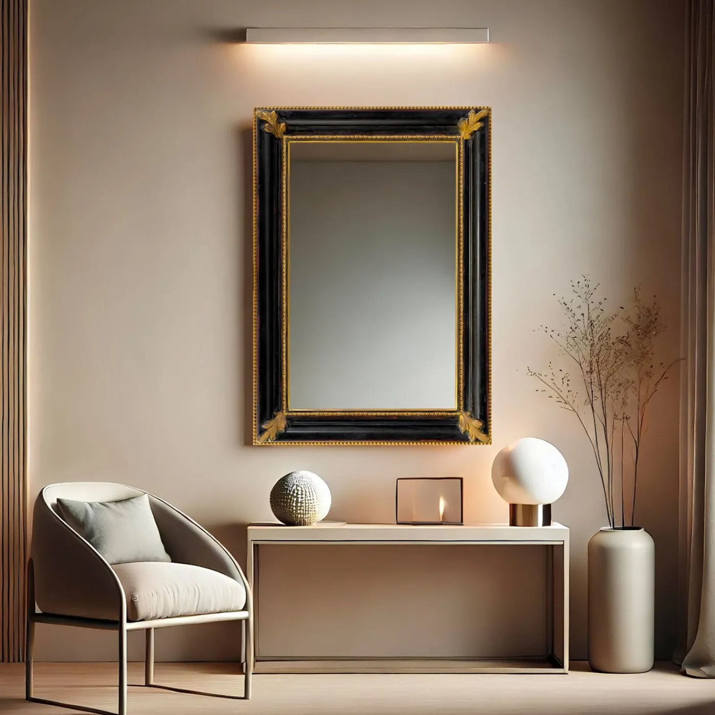 Caratterizzato da uno stile barocco che trae ispirazione dalle cornici utilizzate dal pittore Salvator Rosa, questo straordinario specchio da parete emana un elegante fascino vintage. Realizzato a mano in ebano, è decorato con foglia d’oro che ne esalta il carattere prezioso. Un pezzo d’accento perfetto per interni classici ed eclettici.