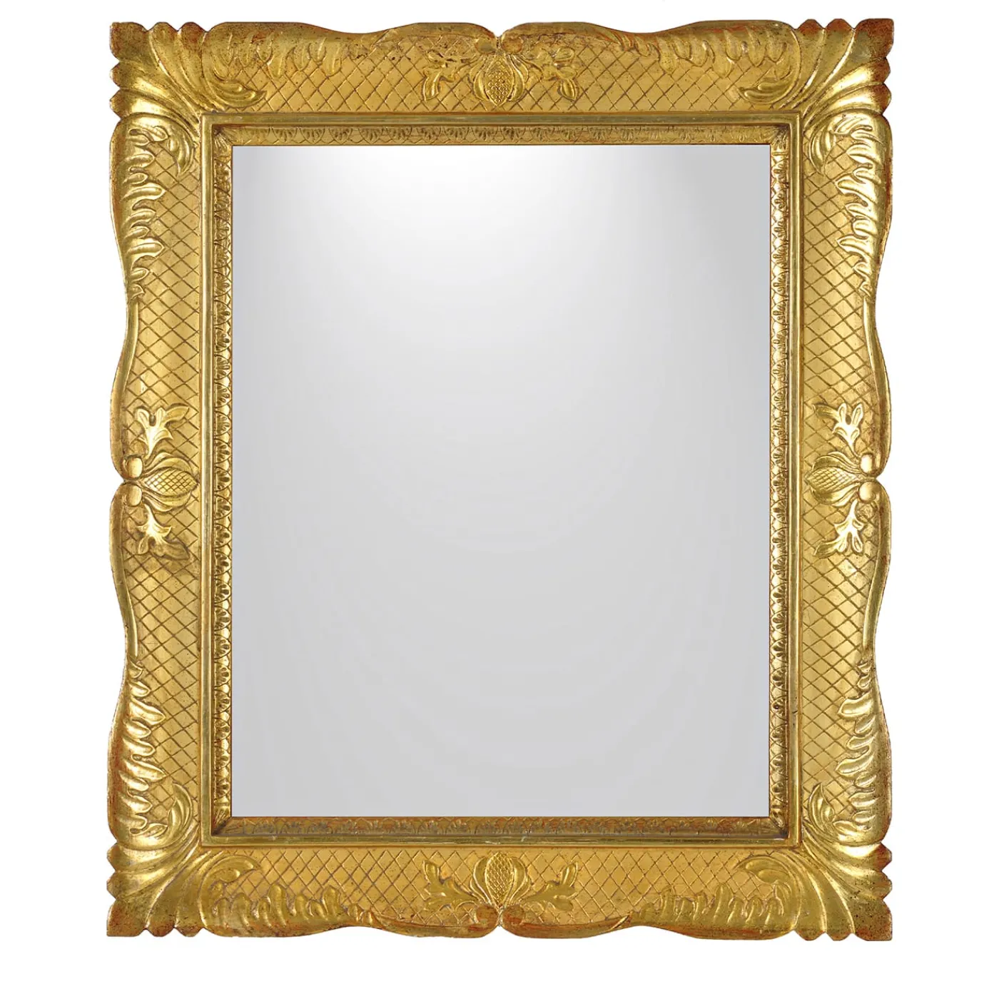 Un tradizionale specchio a cornice napoletana con stucchi e incisioni. Con una finitura lucida in foglia d’oro brunita, la sua cornice intagliata è interamente realizzata a mano e lucidatura con pietra di agata. Internamente, le dimensioni dello specchio a cornice sono 65 x 55 cm. Si prega di chiedere al Concierge per i dettagli.
