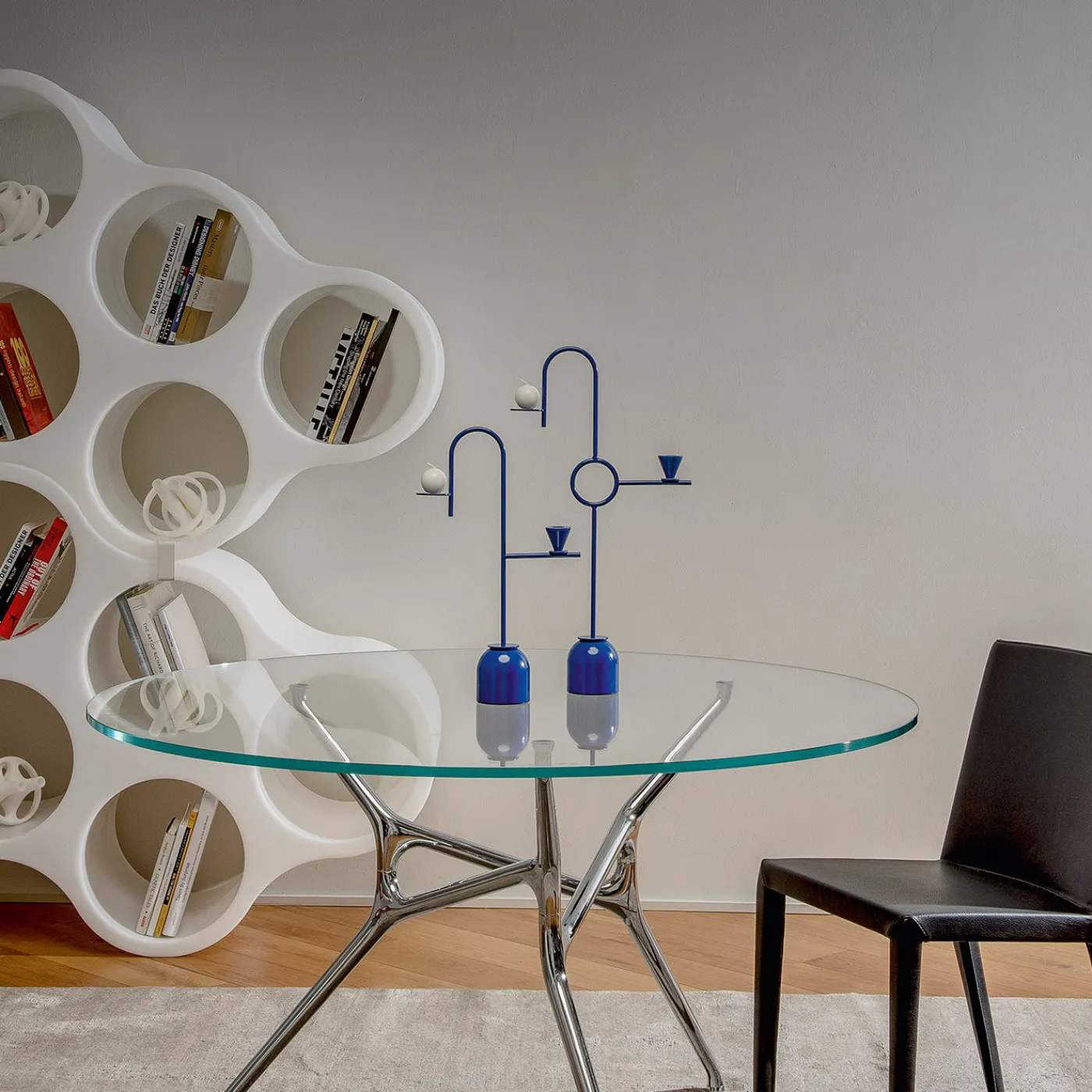 Una geometria aggraziata caratterizza questo portacandele blu del designer Thomas Dariel. Per questo progetto, il designer ha definito lo spazio con sottili steli curvi, illuminati di blu indaco. Il portacandele Blue è realizzato in metallo laminato curvato con base in metallo. Le candele non sono incluse.