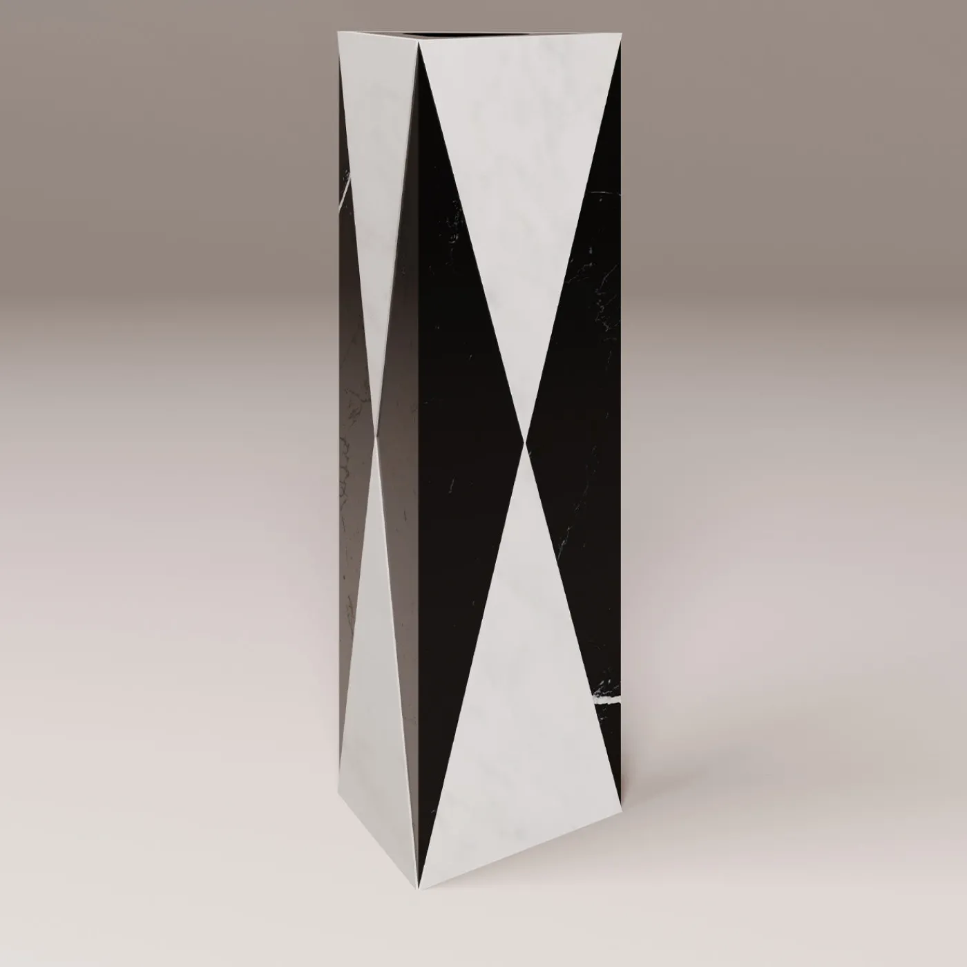 Un look in bianco e nero combinato con un design geometrico pulito conferisce a questo pregiato vaso in marmo la sua raffinata opulenza. Realizzato in marmo Marquina, la silhouette è arricchita da inserti triangolari in bianco Carrara levigato, che offrono un seducente contrasto tra toni e venature, rendendo ogni pezzo assolutamente unico. Numerato e realizzato su ordinazione, il vaso può essere personalizzato su richiesta al Concierge.
