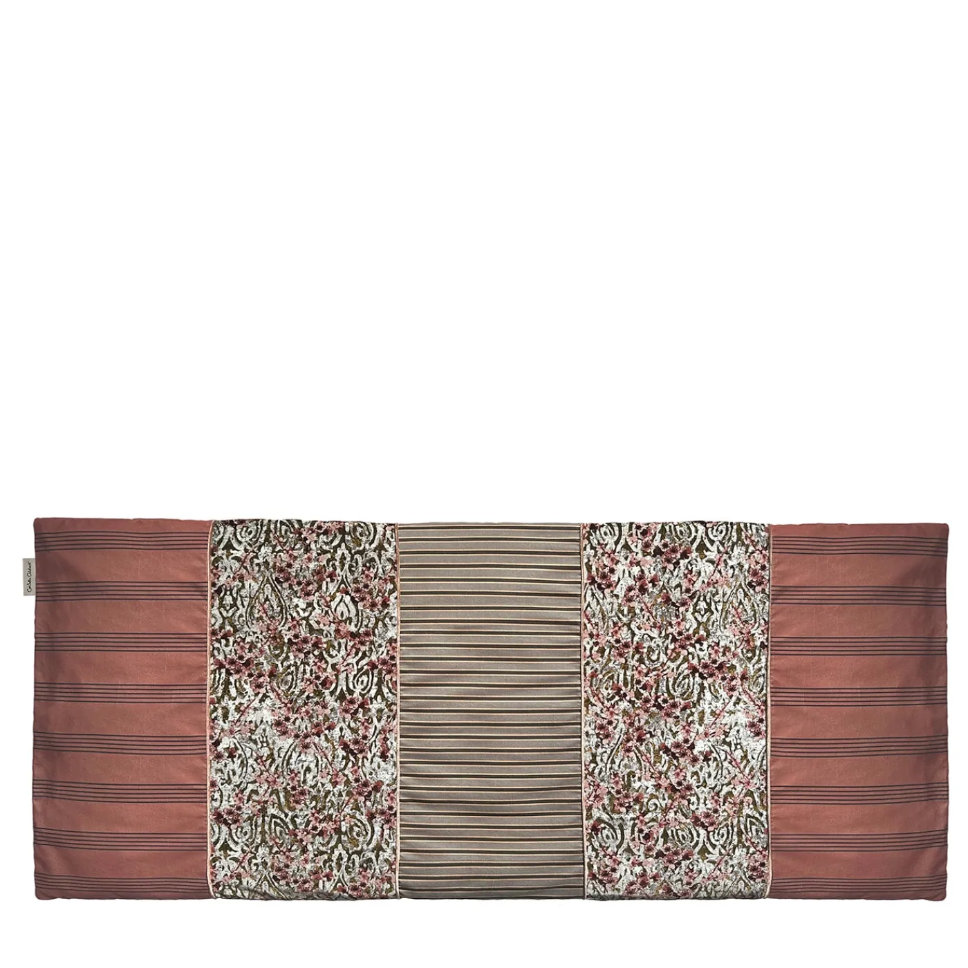 Disegnato pensando a un giardino fiorito di Damasco, questo runner da letto è un prezioso pezzo imbottito che si distingue per l’effetto glamour delle sue tre stampe giustapposte. I toni del grigio e del rosa antico definiscono la raffinata palette dei velluti di cotone, mentre per la fodera in raso sul retro è stato scelto un profondo tono moka. Per istruzioni dettagliate sul lavaggio, rivolgersi al Concierge.