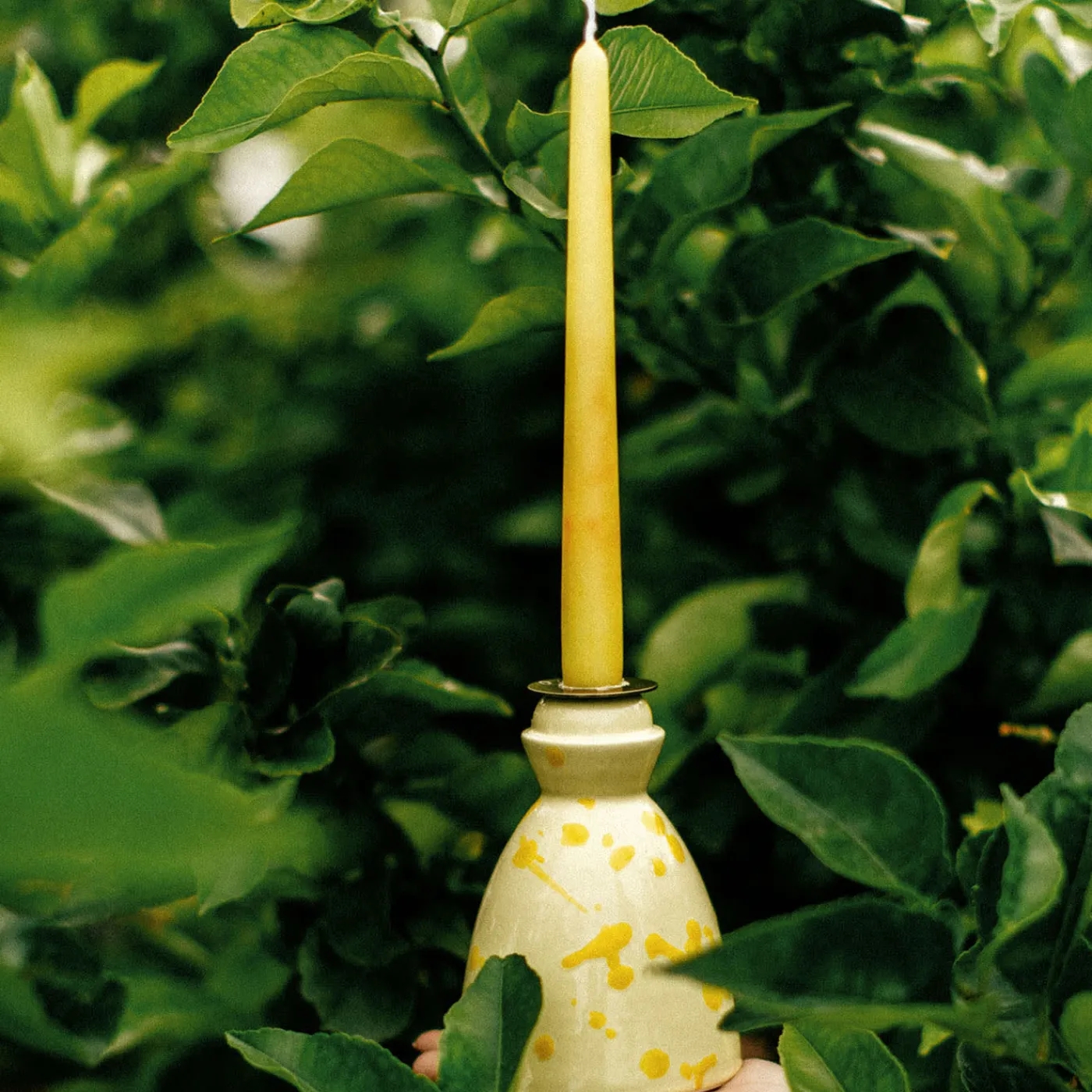 Candeliere decorativo in ceramica fatto a mano con raccoglitore di cera in ottone satinato e set di 4 candele profumate Agrumeto. Immergetevi nella magia di una cena a lume di candela con la delicata fragranza Agrumeto. Il candeliere viene fornito in una confezione regalo che include il set di 4 candele profumate, realizzate in cartone riciclato da fonti certificate.