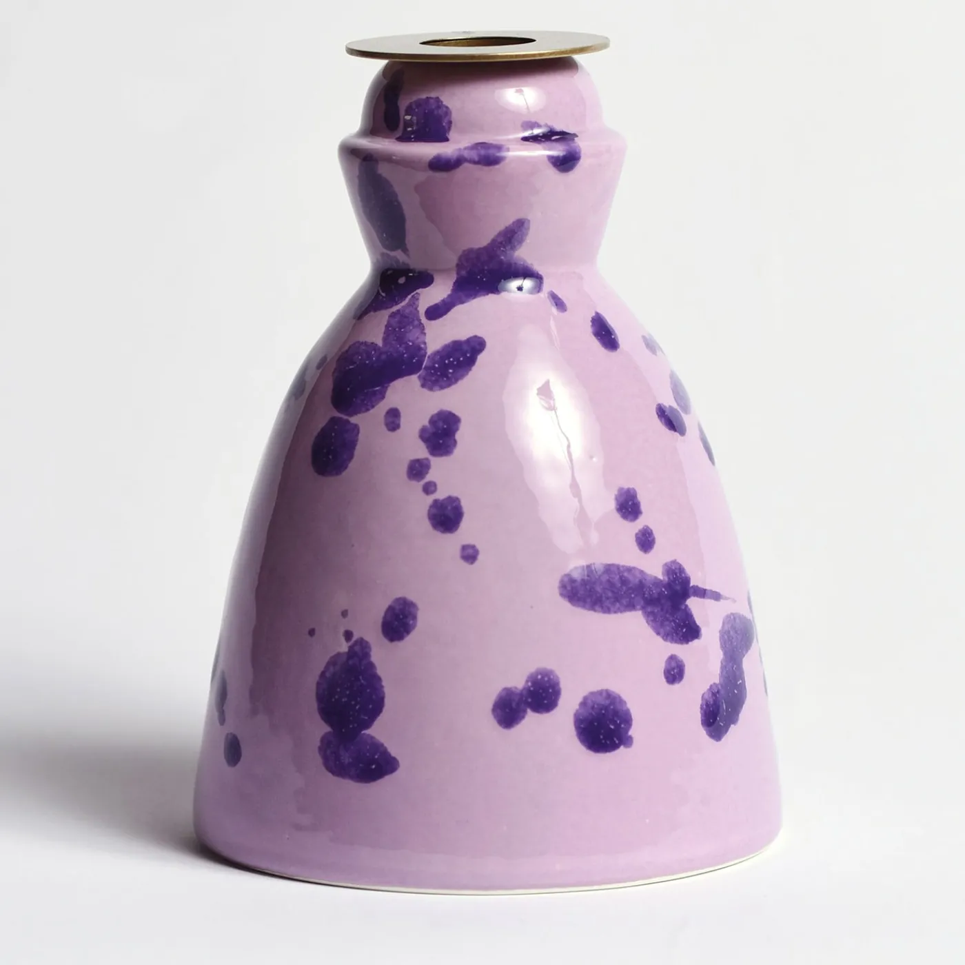 Candeliere decorativo in ceramica fatto a mano con raccoglitore di cera in ottone satinato e set di 4 candele profumate Lavanda e Iris. Immergetevi nella magia di una cena a lume di candela con la delicata fragranza Lavanda e Iris. Il candeliere viene fornito in una confezione regalo che include il set di 4 candele profumate, realizzate in cartone riciclato da fonti certificate.