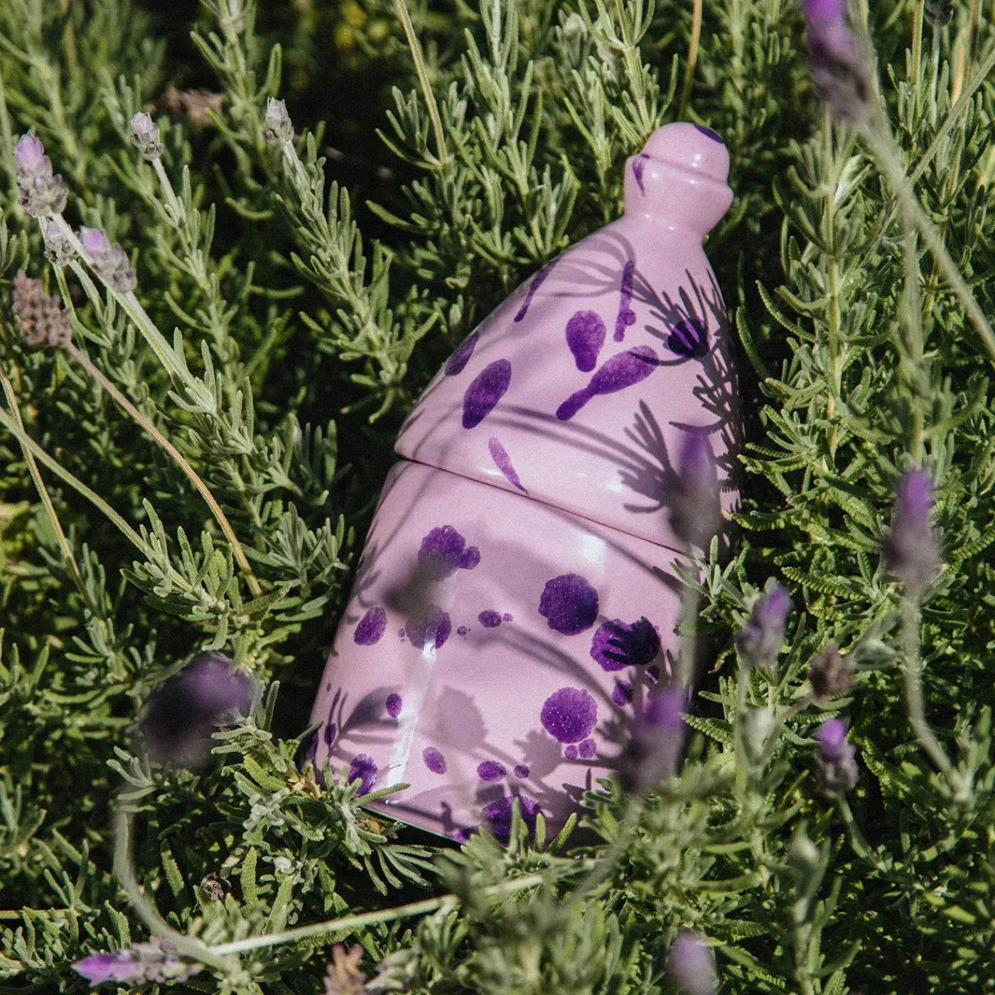 Magnifico omaggio alla Valle d’Itria, la regione meridionale della Puglia, questo portacandele presenta un design elegante ma semplice, ispirato alla caratteristica forma di un trullo, una tipica casa locale. Realizzato a mano in ceramica dipinta di lilla e viola, è completato da una candela di cera di soia fatta a mano che vanta un profumo di lavanda e iris che unisce qualità riscaldanti e avvolgenti. Disponibile in altri colori, questo pezzo viene fornito in cartone riciclato e in una scatola di lino grezzo.