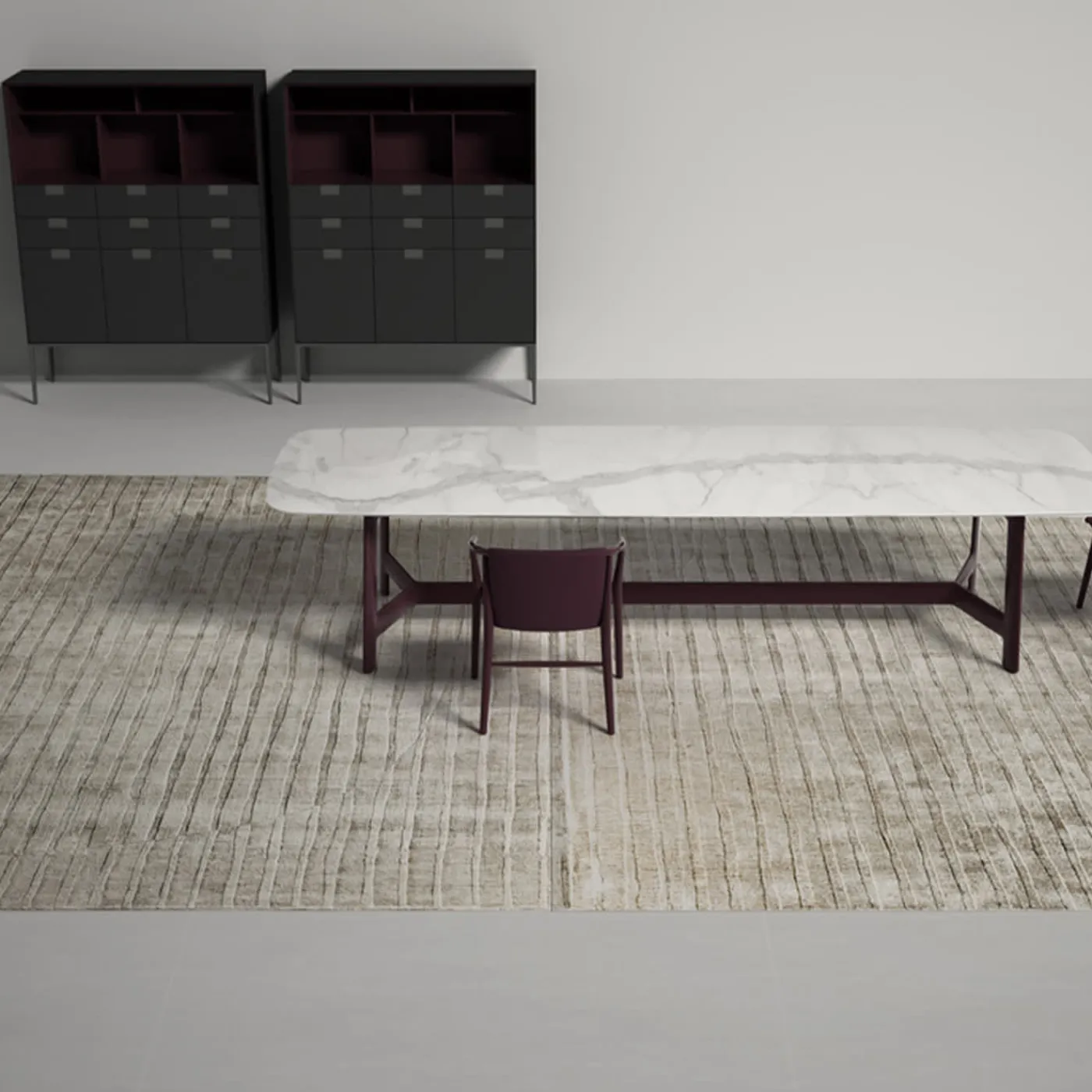 Questo raffinato tappeto grigio della collezione Bamboo Design vanta un elegante design moderno ispirato alle foreste di bambù. Le silhouette salicee delle canne di bambù sono rese attraverso una minuziosa annodatura a mano su telaio e conseguente incisione, che crea una piacevole qualità testuale data dalle due diverse altezze delle fibre. Disponibile in diversi colori, è anche disponibile in opzioni su misura; per maggiori dettagli, contattare il Concierge.