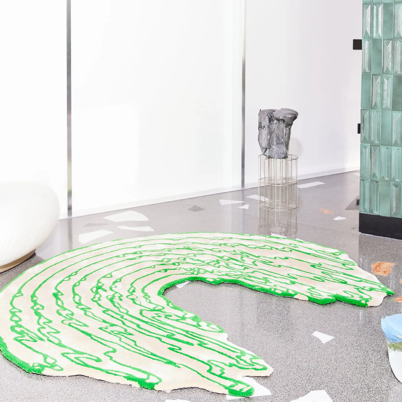 Questo tappeto dalla forma eccentrica, realizzato a mano in lana neozelandese e Tencel lyocell, incarna l’estetica di questo arcobaleno verde e bianco, che sembra fondersi come lava fluente. La peluria iniziale è un effetto normale che svanisce con una pulizia costante con l’aspirapolvere. Si consiglia un lavaggio a secco professionale. Disponibile in più varianti di taglia e colore, contattare il Concierge per le opzioni e le istruzioni dettagliate per la cura.
