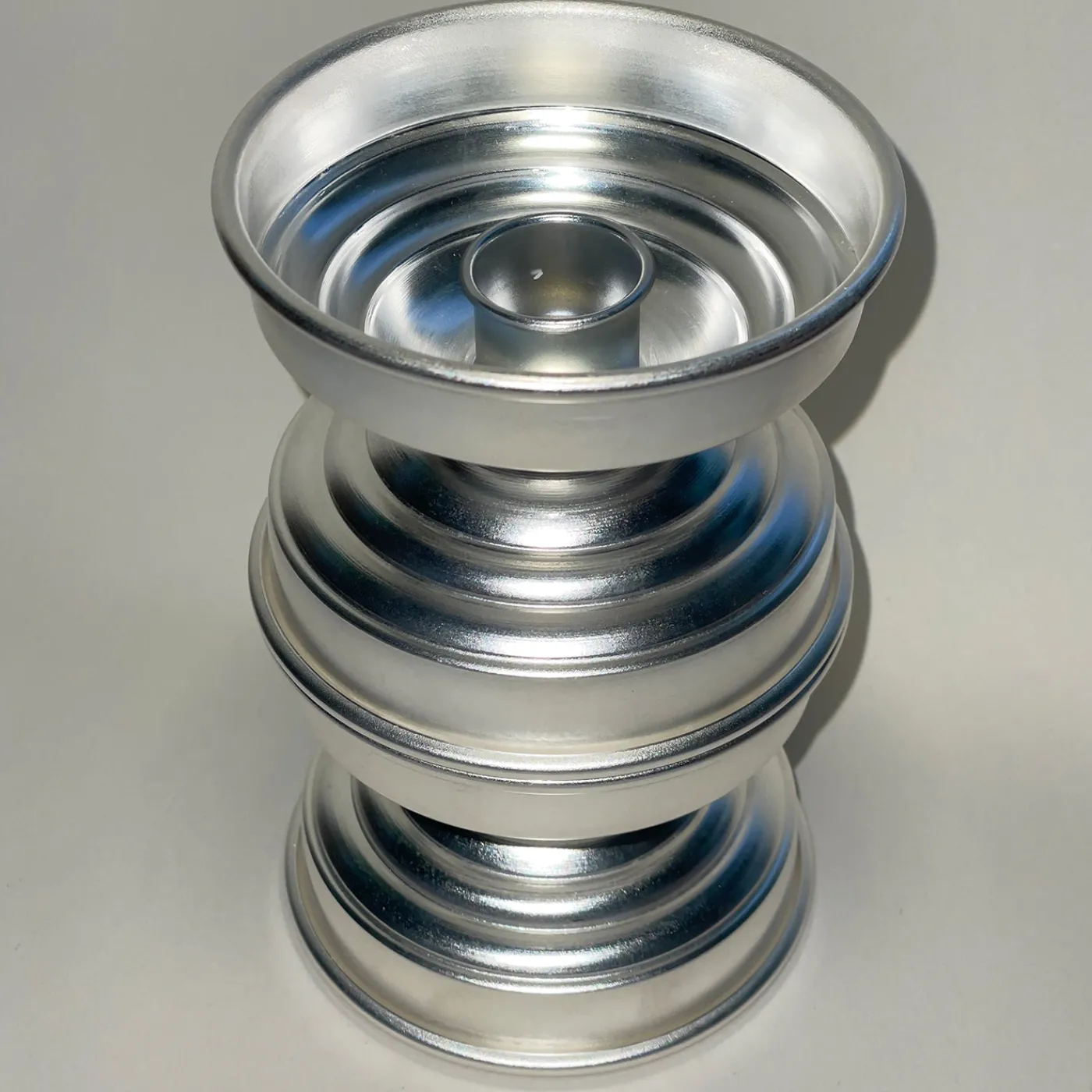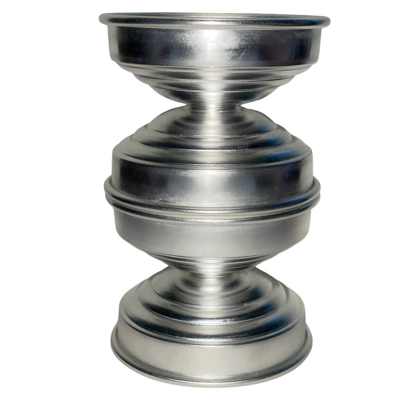 Un portacandele scultoreo dalle proporzioni architettoniche, realizzato in ottone argentato lucidato. La sua forma unisce armoniosamente richiami classici e sensibilità contemporanee, creando giochi di luce e riflessi che arricchiscono l’atmosfera di qualsiasi ambiente. Ogni esemplare è rifinito a mano, espressione di un’eccellente cura artigianale e di un carattere unico. Design di Federica Paoli.