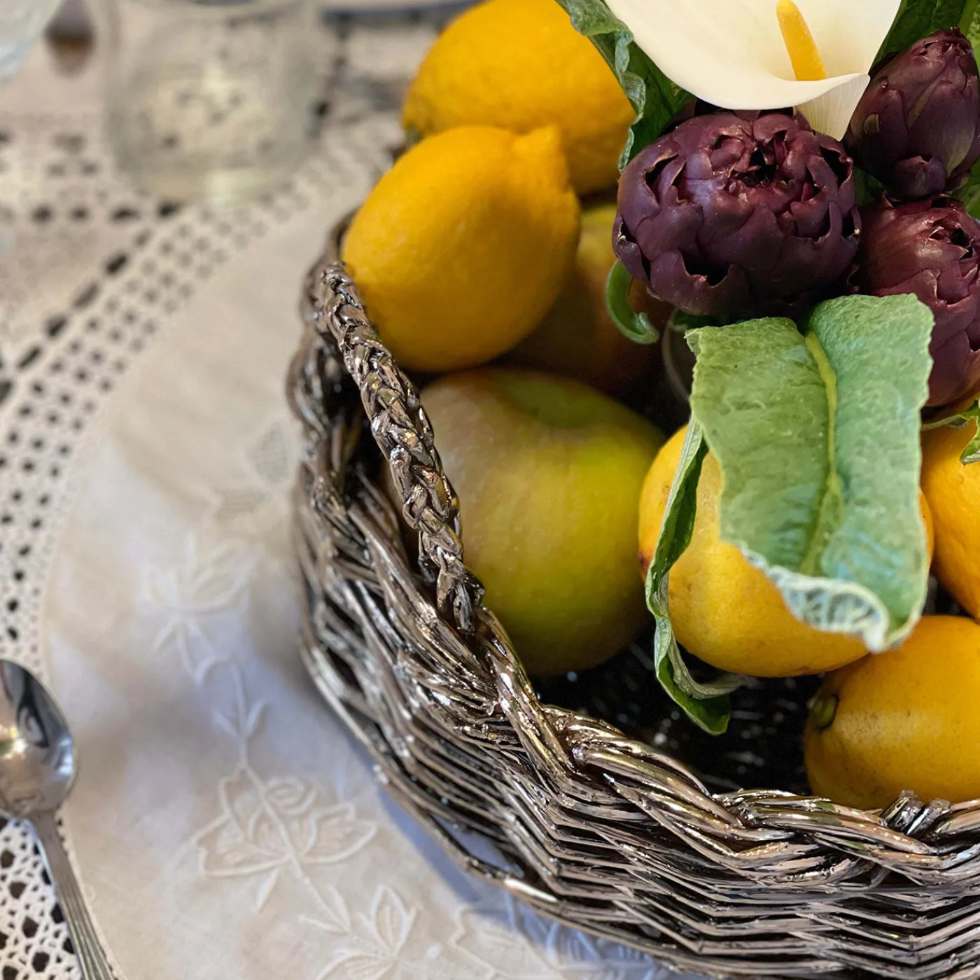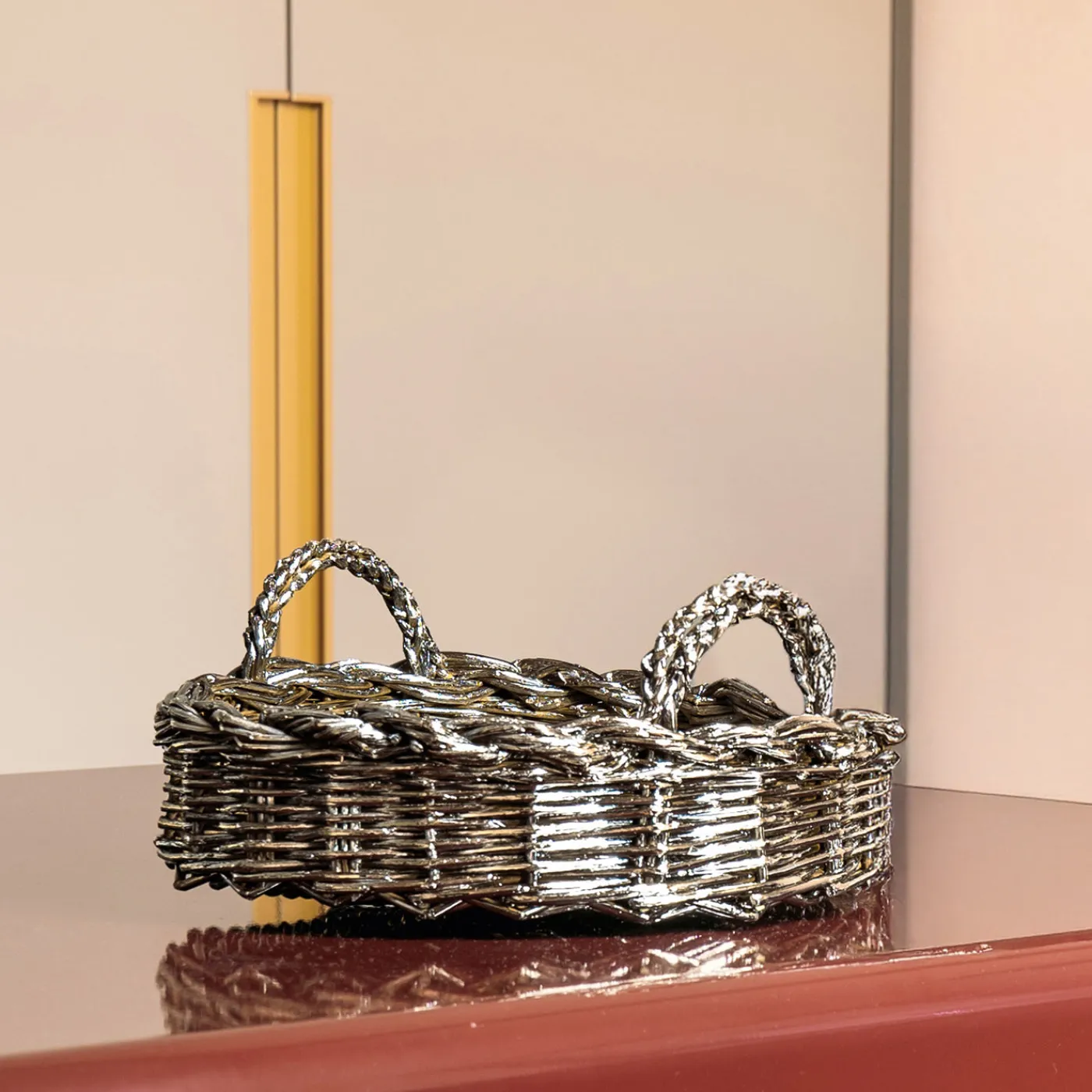Un originale cesto realizzato con un intreccio artigianale complesso, dal forte impatto scultoreo ed estetico. Pensato come elemento decorativo versatile, può essere utilizzato come raffinato centrotavola, contenitore elegante o pezzo da esposizione. Le sue linee organiche intrecciate, abbinate alla finitura lucida, conferiscono un tocco di eleganza a qualsiasi ambiente sofisticato, adattandosi perfettamente a interni classici, moderni o minimalisti che valorizzano l’artigianato e il design contemporaneo.