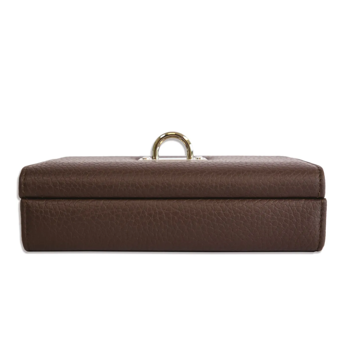 Questo scrigno portagioie, che rappresenta un’eccellenza artigianale, ha una forma allungata e raffinata, realizzata in legno e rivestita in pelle pieno fiore di prima qualità. Caratterizzato da una versatile tonalità marrone, è arricchito da preziosi dettagli in metallo e rivestito internamente in morbida microfibra. Disponibile in una varietà di colori, si prega di consultare il catalogo Artemest per i dettagli.