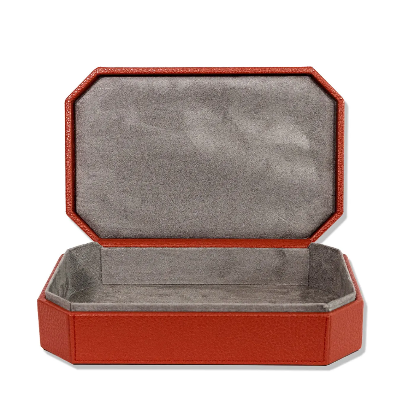 Questa scatola presenta una struttura in legno rivestita in morbida pelle vera di alta qualità, in una ricca tonalità Persian Red. L’interno è foderato in microfibra, offrendo uno spazio delicato e protettivo per la conservazione. Del Monte Box 25 unisce una texture raffinata a un design pratico, ideale per organizzare diversi oggetti valorizzando al contempo l’arredamento della casa. Disponibile anche in quattordici colori aggiuntivi. Per maggiori informazioni, contattare il servizio Concierge.