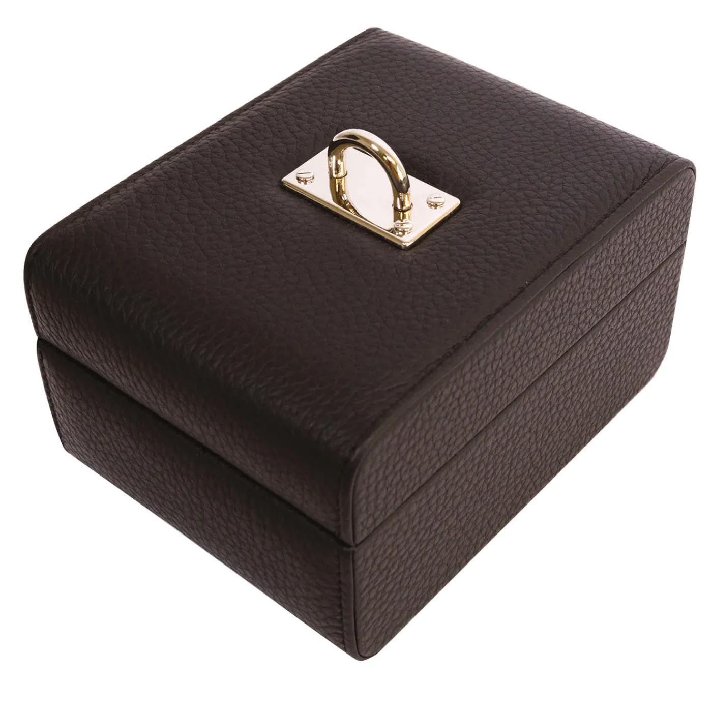 Il tocco morbido della vera pelle pieno fiore si fonde con l’intramontabile scelta del nero e con i preziosi dettagli in metallo di questo cofanetto per orologi, che costituisce una splendida idea regalo per i propri cari. Rivestito internamente in microfibra. Abilmente realizzato a mano, è disponibile in 13 colori diversi su richiesta; per i dettagli, consultare il catalogo Artemest.