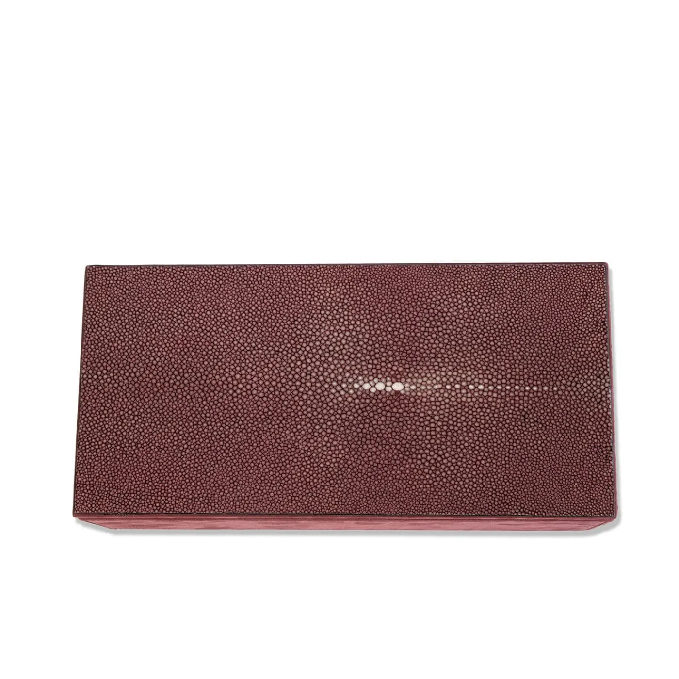 La scatola di legno è sapientemente lavorata a mano e presenta una lussuosa miscela di pelle nubuck e vera pelle Stingray sulla superficie superiore, completata da un interno in morbida microfibra. È disponibile nell’accattivante tonalità di nubuck rosso persiano e in altre quattordici opzioni di colore, per offrire una scelta diversificata in grado di soddisfare le preferenze individuali e di stile. Per ulteriori informazioni, contattare il Concierge.