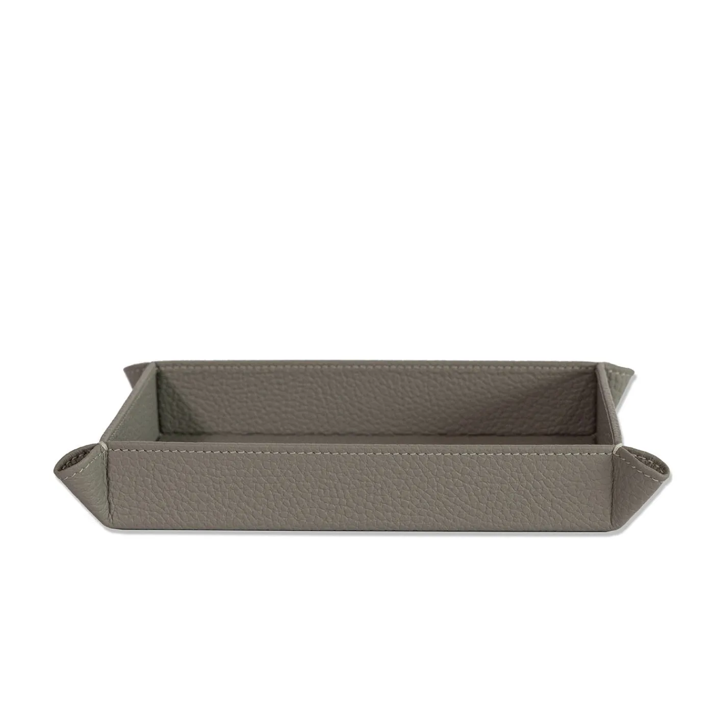 Un portaoggetti realizzato in pregiata pelle pieno fiore, progettato per mantenere piccoli oggetti ordinati. Presenta una forma rettangolare con bordi accuratamente cuciti e angoli piegati, unendo praticità ed eleganza discreta. Ideale per riporre chiavi, monete o accessori, arricchisce ogni ambiente con la sua sobria raffinatezza. Disponibile in una varietà di colori; per maggiori informazioni, contattare il Concierge.