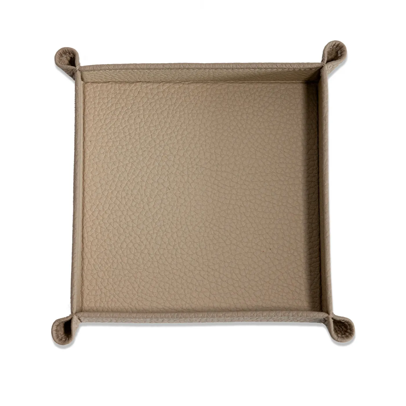Un portaoggetti artigianale rivestito in pregiata pelle pieno fiore beige. Progettato per contenere ordinatamente gli oggetti essenziali di tutti i giorni, questo pezzo si adatta facilmente a diversi stili d’interni. Ideale per riporre chiavi, monete o accessori, arricchisce ogni ambiente con la sua sobria raffinatezza. Disponibile in una versatile palette di quindici colori; per maggiori informazioni, contattare il Concierge.