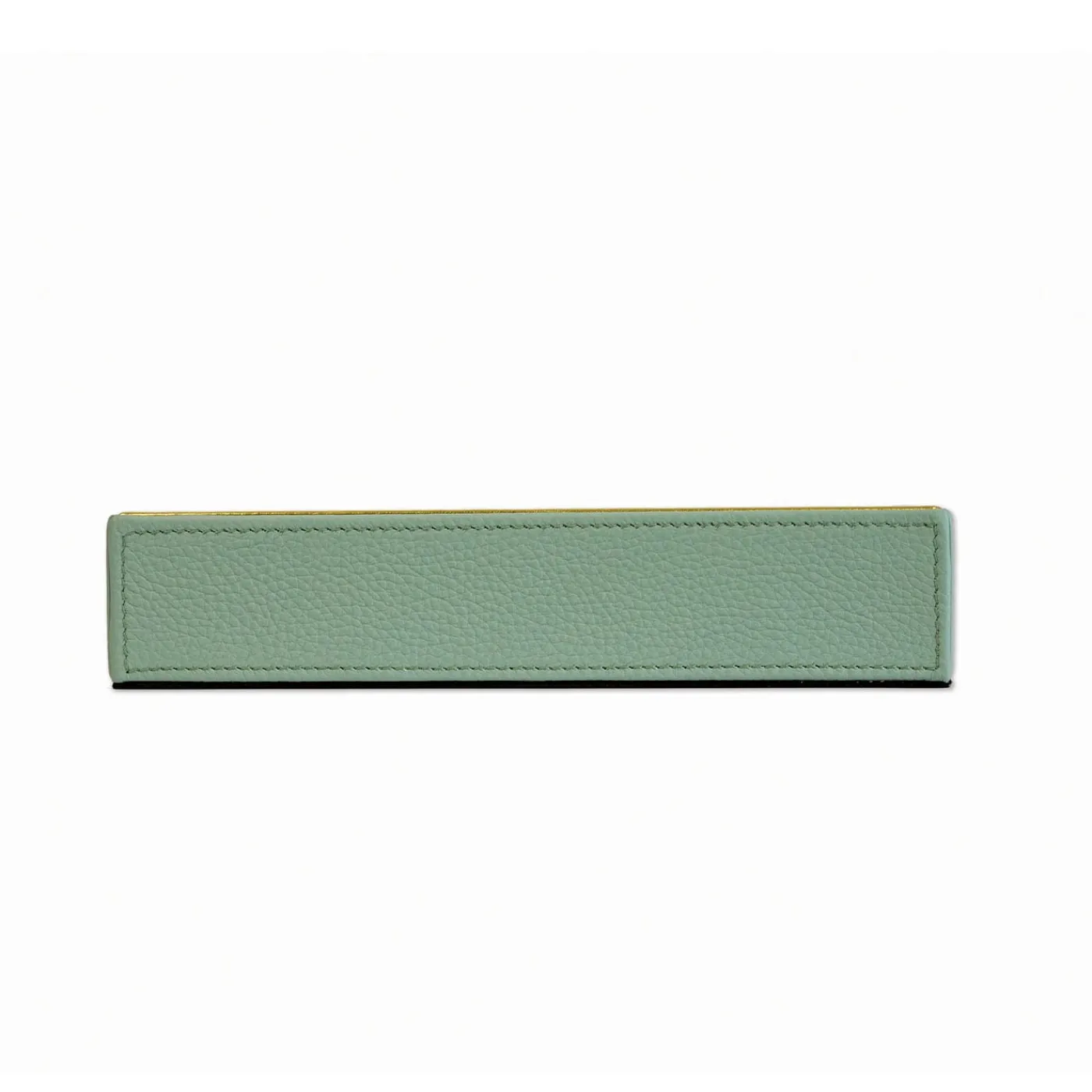 Vassoio vide-poche in legno rivestito in vera pelle pregiata e morbida con rafia naturale. Disponibile in 14 colori diversi. Chiedete al Concierge per ulteriori dettagli.