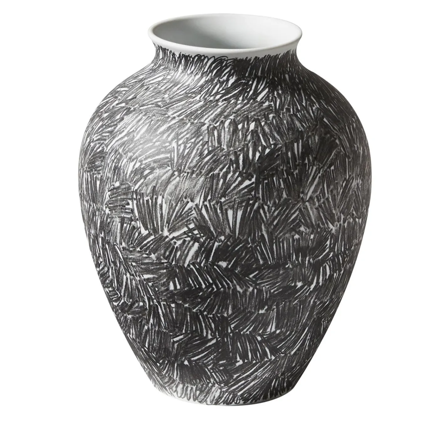 La volontà di reinterpretare in chiave contemporanea forme archetipiche dell’archivio della Manifattura Ginori ha portato Formafantasma a progettare la Collezione Post Scriptum, di cui fa parte questo splendido vaso rigonfio. Realizzato in fine porcellana bianca, è caratterizzato da un intrigante e apparentemente caotico motivo di pennellate nere dipinte a mano che ne attestano l’esclusività.