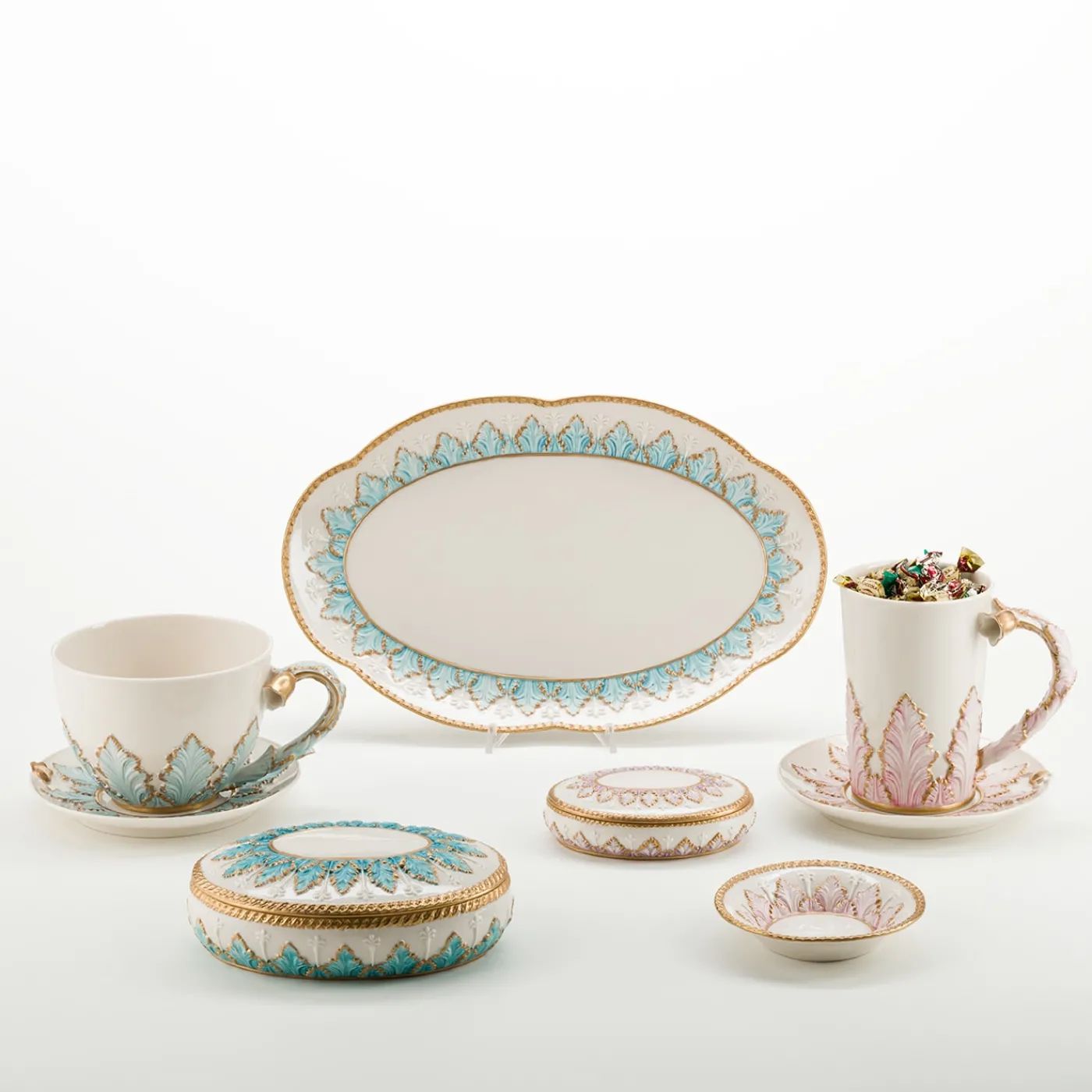 Il richiamo alla natura e le sue dimensioni aggraziate rendono questo oggetto estremamente versatile, adatto a coreografie funzionali sulla tavola o come gradito regalo per occasioni speciali, che conferirà stile ed eleganza a qualsiasi ambiente della casa. Ogni colore, scelto con cura, è sapientemente dipinto a mano dai nostri maestri artigiani e bordato in oro 24 carati.