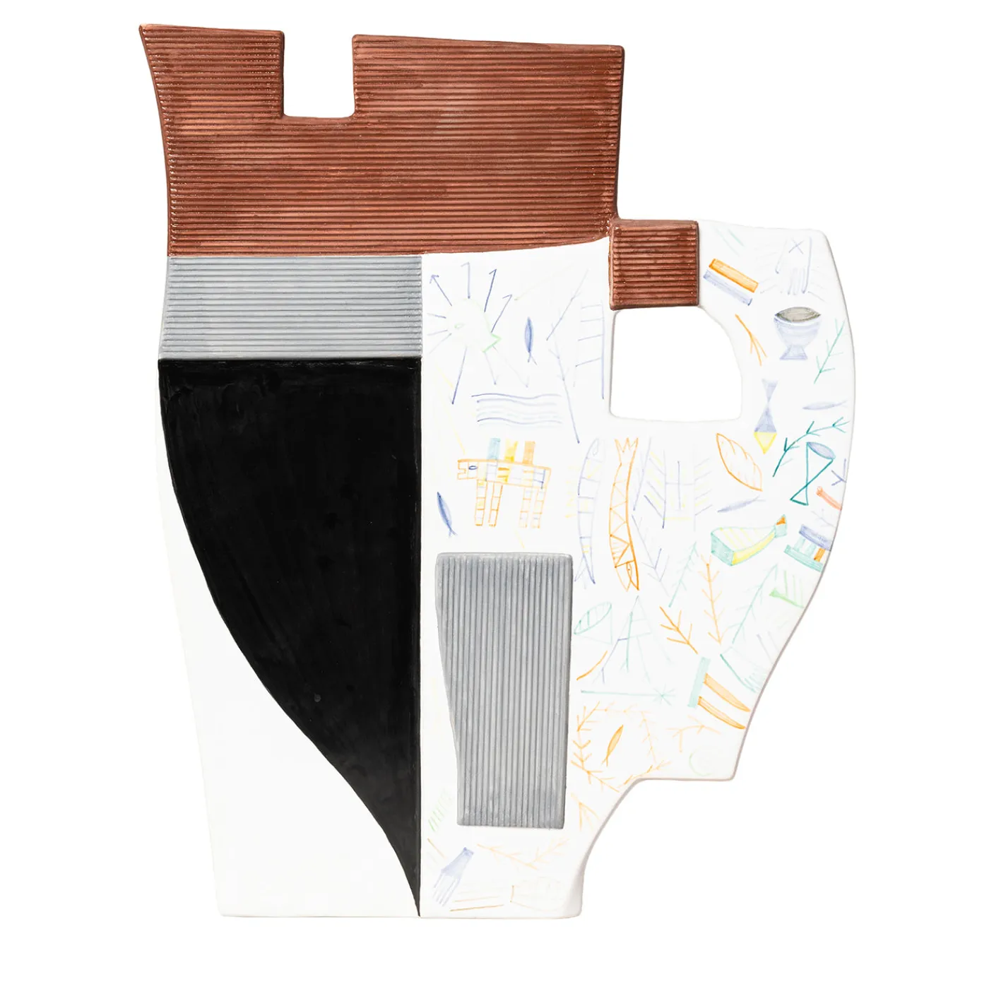 Andromaca fa parte di una collezione unica di dieci vasi scultorei in ceramica progettati da Mimmo Paladino, ispirati a figure iconiche dell’Iliade e dell’Odissea. La sua forma distintiva presenta linee ondulate e campiture cromatiche contrastanti, che evocano una mente sospesa tra memoria e tristezza. Questo vaso unisce tecniche tradizionali con espressione artistica contemporanea, dando vita a un simbolo lirico ma potente di resilienza e dignità.