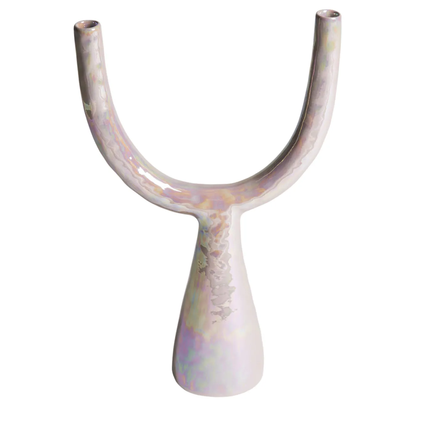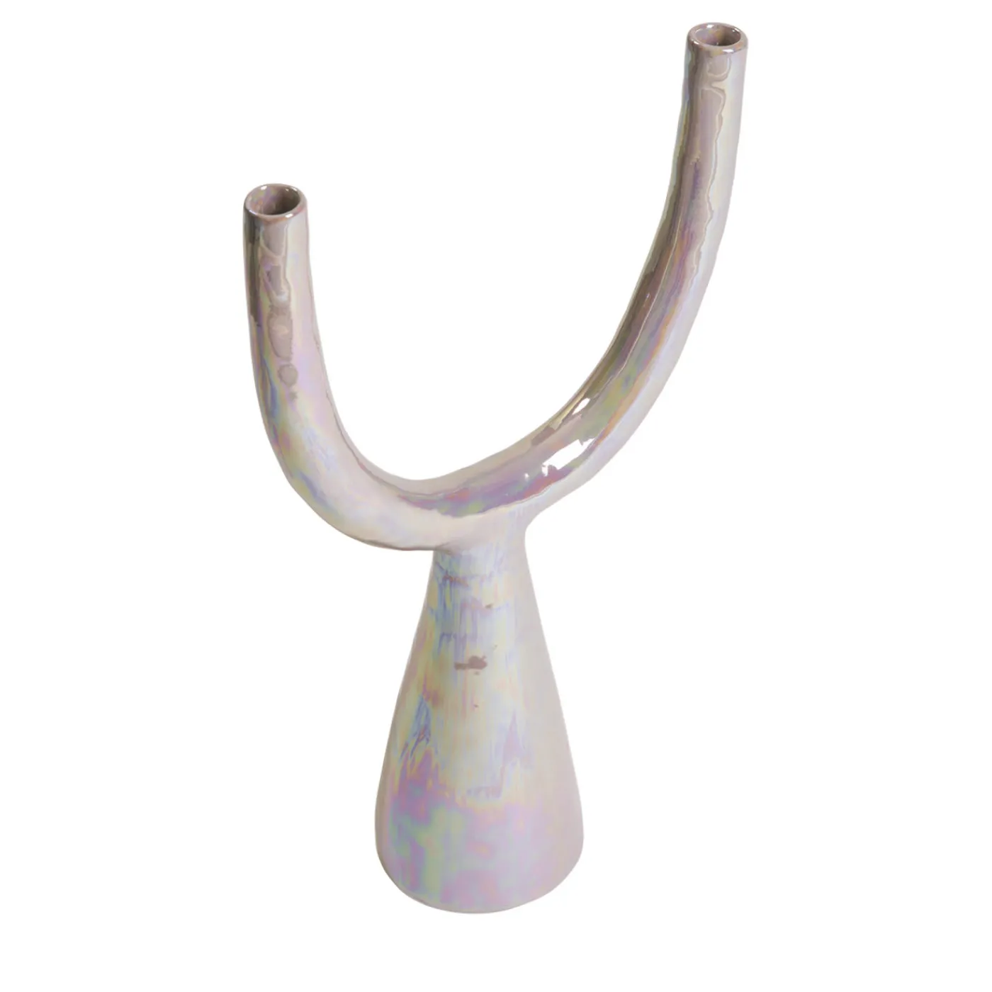 Questo doppio portacandele è un pezzo décor moderno e di classe di Gatti Ceramica. Dopo la prima cottura, l’originale in maiolica viene dipinto a mano in bianco e poi cotto per la seconda volta. Il pezzo è rifinito con un lustro di madreperla e una terza cottura, secondo le antiche tecniche di Faenza, capitale della ceramica del Nord Italia.
