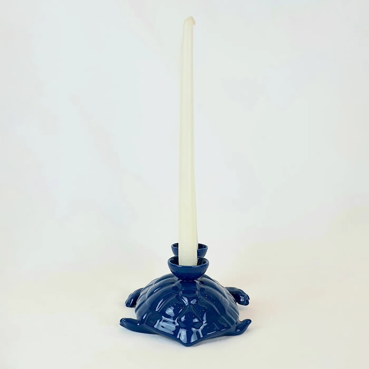 Elegante e giocoso al tempo stesso, questo portacandele in ceramica a forma di tartaruga con bobeches incorporato è un originale centrotavola che non passerà di certo inosservato. Estremamente liscio al tatto, il suo corpo in maiolica è sottoposto a due diverse cotture per sigillare la sua vibrante colorazione blu lucida pazientemente dipinta a mano. Sono disponibili più finiture e diverse forme di animali della collezione Fiamme Bestiali.