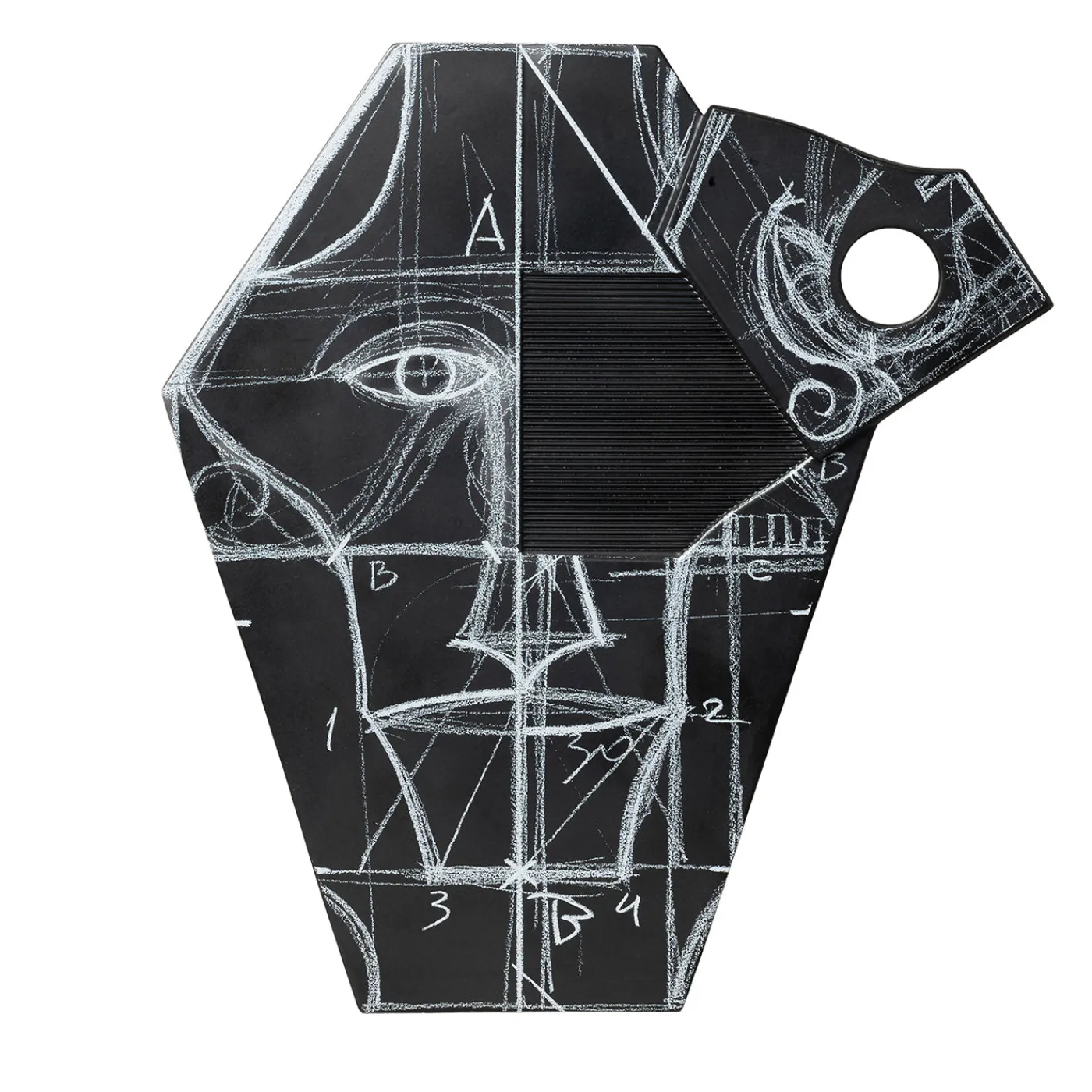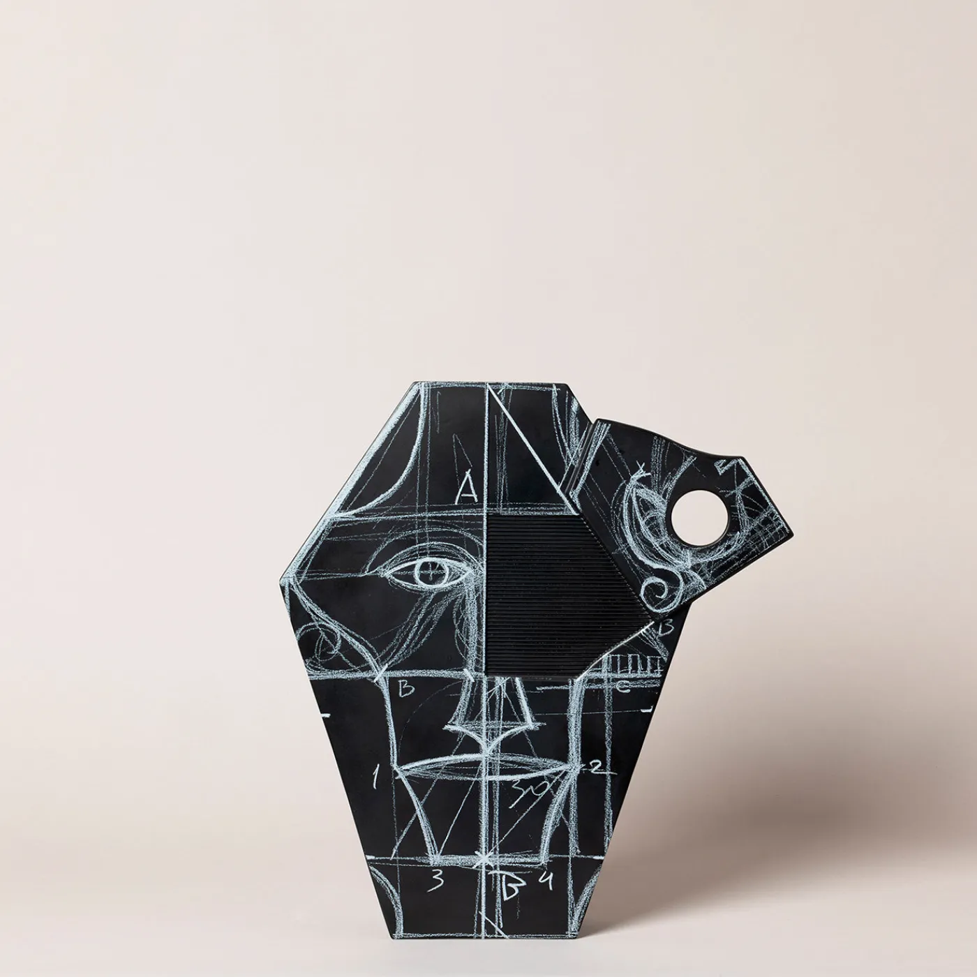 Ulisse fa parte di una collezione unica di dieci vasi scultorei progettati da Mimmo Paladino, ispirati a figure iconiche dell’Iliade e dell’Odissea. Questo pezzo reinterpreta la figura dell’eroe errante attraverso una forma scultorea distintiva, animata da fitte linee grafiche e motivi intricati che richiamano i percorsi labirintici dei suoi viaggi. La superficie smaltata in nero, arricchita da dettagli serigrafici bianchi, evoca memoria e identità, dando vita a un dialogo continuo tra presenza e assenza. Il vaso Ulisse fonde simbolismo mitologico con espressione artistica contemporanea in un oggetto decorativo unico ed evocativo.