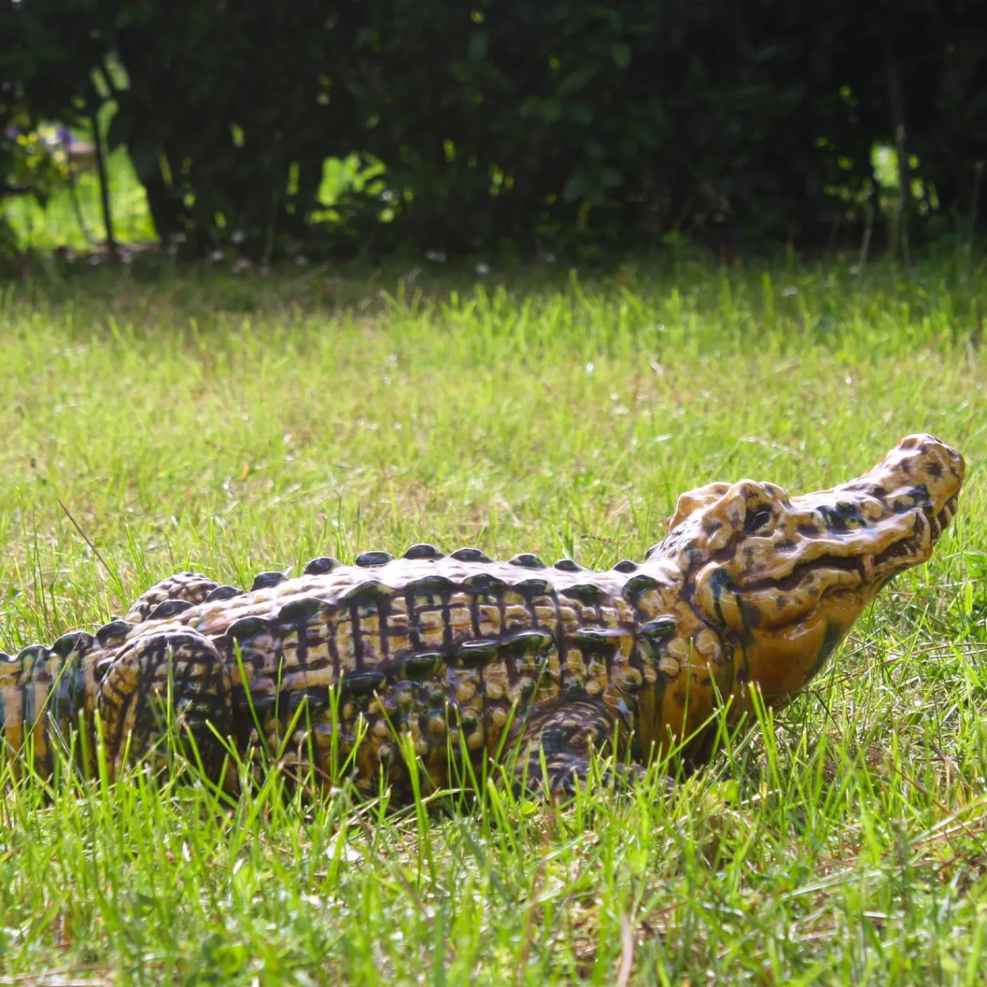 Salotti, patii e terrazze di case contemporanee saranno ravvivati da un singolare tocco eclettico con l’esposizione di questa splendida scultura in ceramica fatta a mano, a forma di coccodrillo e squisitamente dipinta a mano. Realistica nelle sue tonalità terrose come nei suoi dettagli materici, è un’idea regalo intelligente per gli amanti degli animali che apprezzano anche la ceramica artigianale.