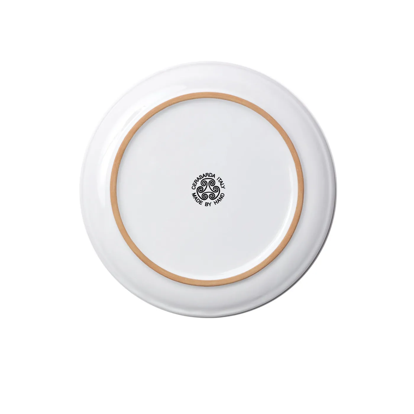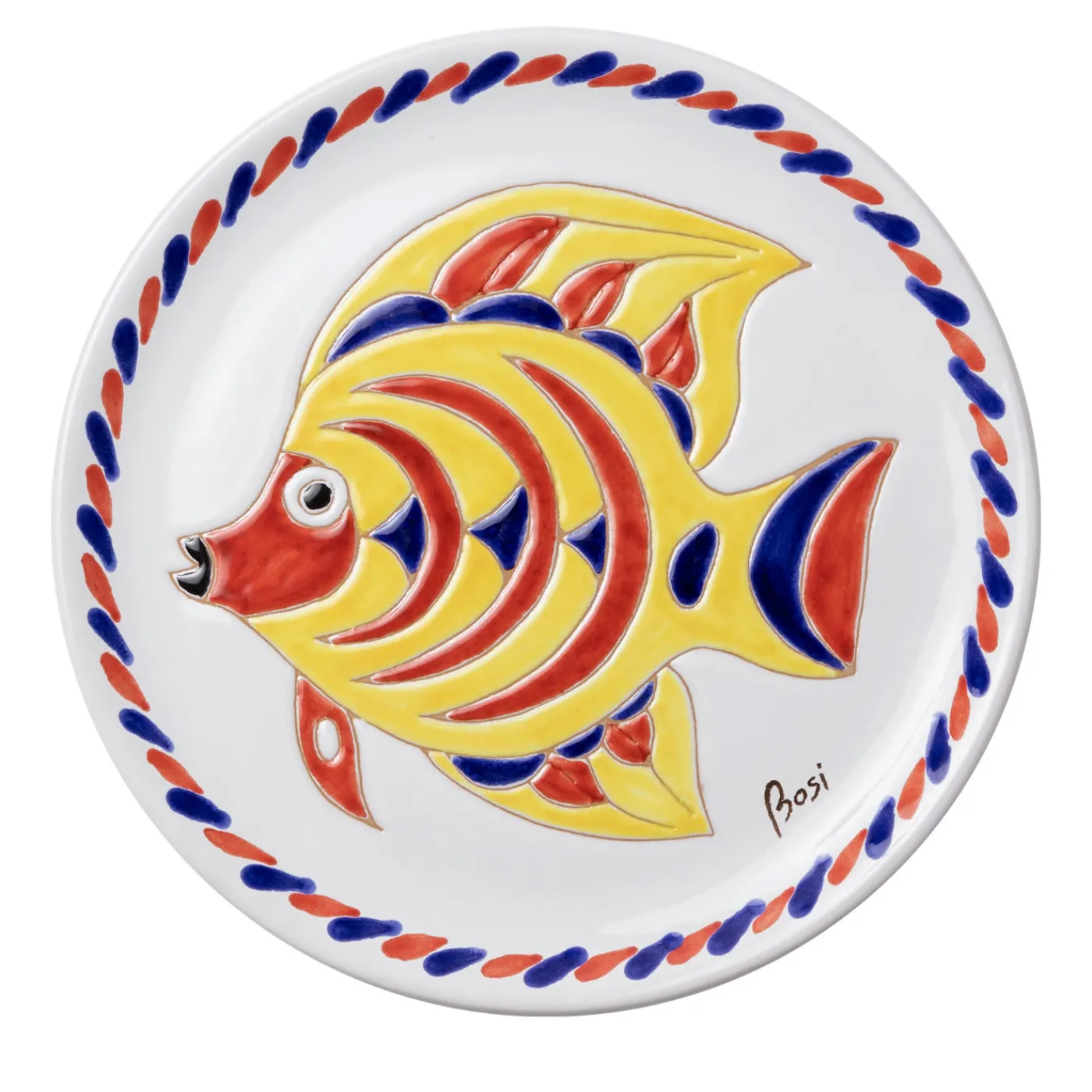 Questo piatto unico disegnato da Giorgio Bosi è una splendida celebrazione del mare sardo. Realizzato a mano in ceramica pregiata, vanta una decorazione unica di un pesce pieno di colore e movimento. Il disegno è realizzato con la tecnica del graffito, in cui la terracotta viene graffiata con smalti per creare un singolare oggetto d’arte.
