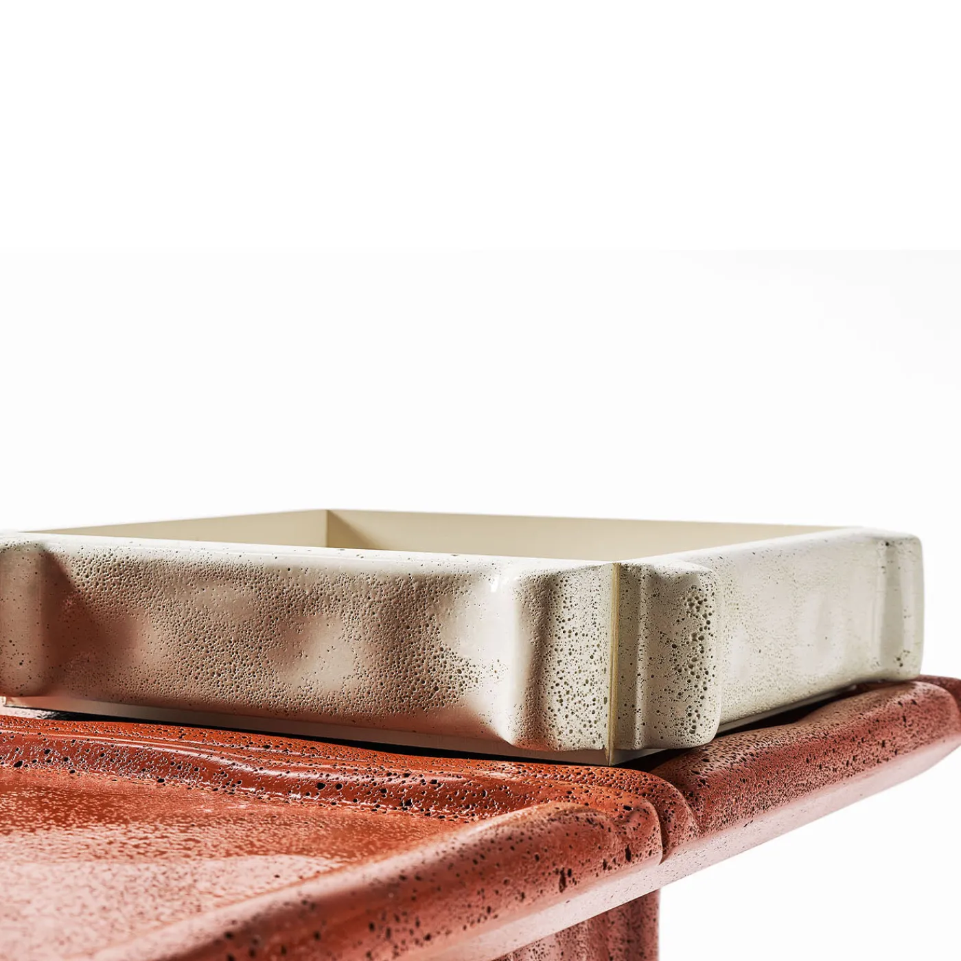 Lo svuotatasche decorativo bianco Riva di Patricia Urquiola cattura la fluidità dell’acqua attraverso i suoi volumi organici e modulari e i suoi bordi irregolari e pronunciati. La sua superficie dinamica riflette il ritmo delle onde che si infrangono, offrendo un’esperienza tattile e visiva che trasforma ogni ambiente. La forma scultorea del vide poche lo rende un’aggiunta distintiva agli interni contemporanei.