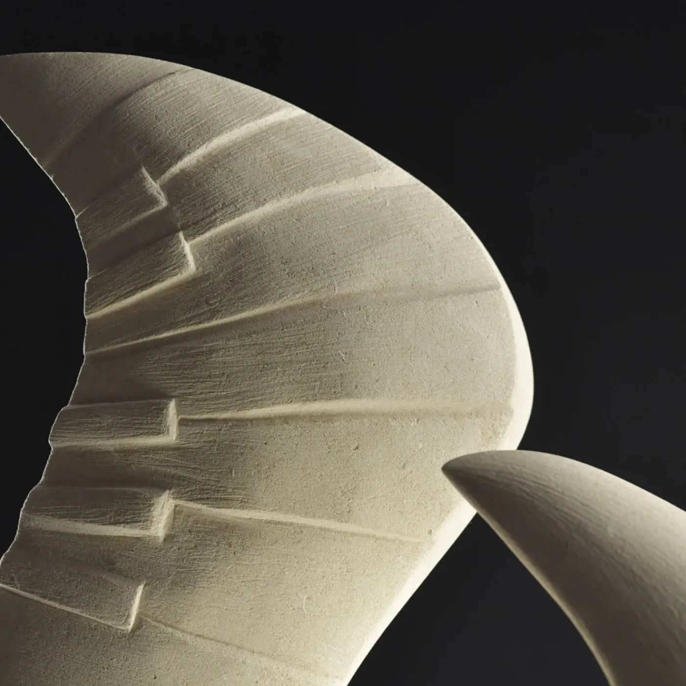 Una silhouette sinuosa e armoniosa, apparentemente pavimentata con piastrelle di pianoforte, contraddistingue questa scultura spettacolare e naturalmente luminosa, realizzata con una speciale pietra di origine marina ricca di fossili che si trova solo nelle zone vicine a Lecce, in Puglia. Il suo corpo contorto rappresenta il percorso di vita di una persona, dove le tessere che si sceglie di suonare giorno per giorno determineranno la sua melodia unica. Realizzato a mano e firmato dall’artista Andrea Serra.