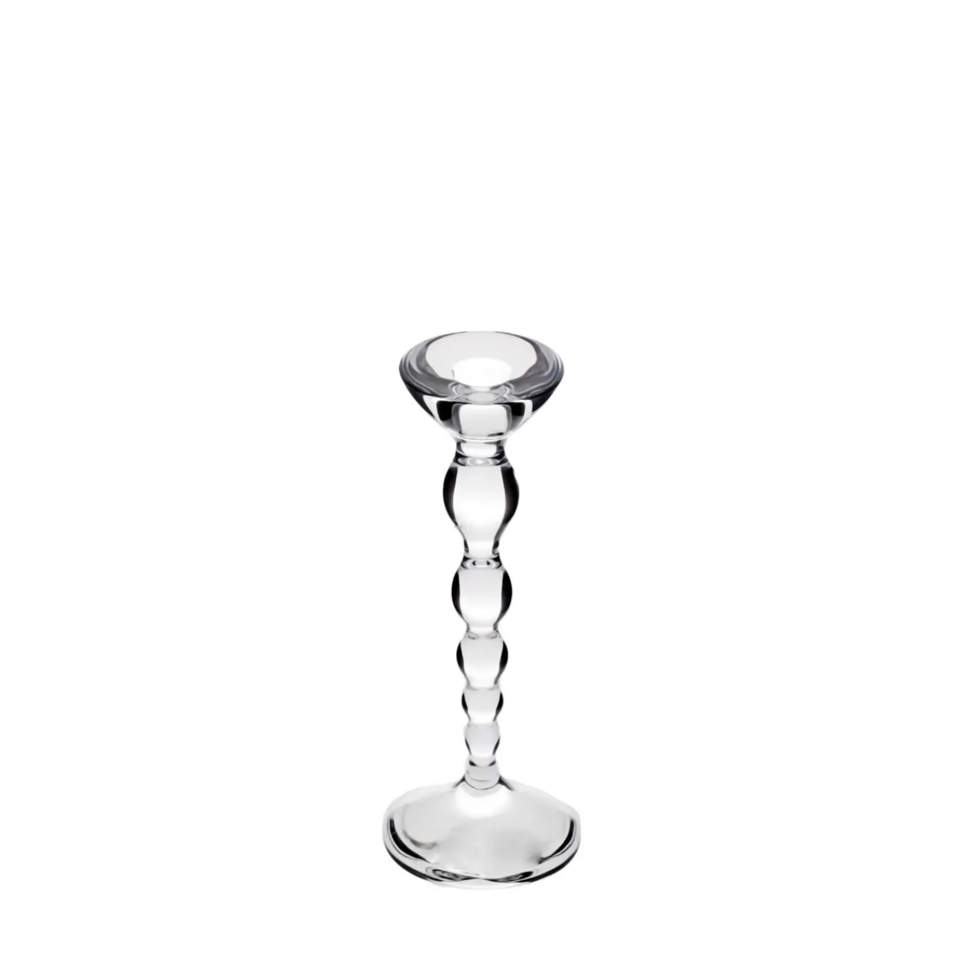 L’elegante manico a spirale di questo delicato candeliere ricorda le perline di una collana. Un design originale di ColleVilca, rinomato per l’eccellente qualità trasparente del suo cristallo, in una versione leggermente più piccola.