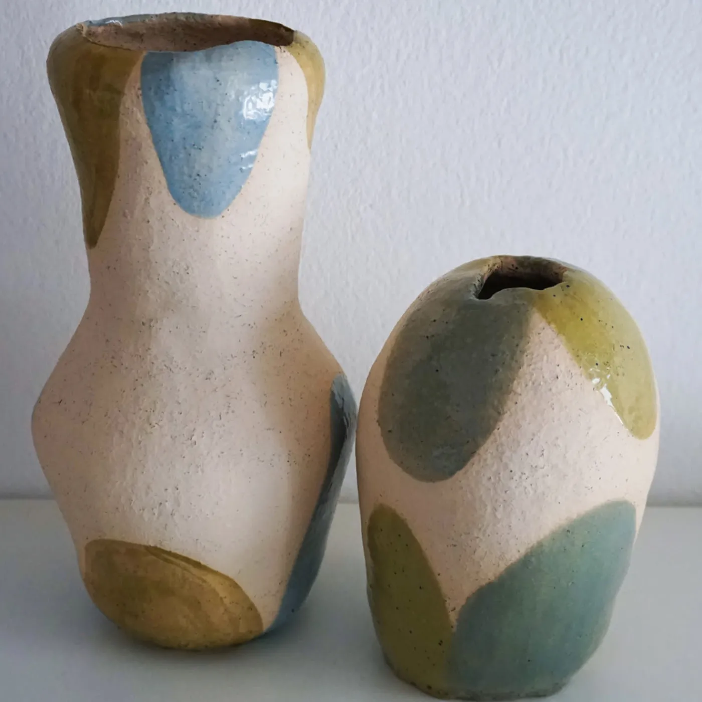 Questo affascinante vaso è interamente realizzato a mano e dipinto a mano dall’artista Cristina Cavallari nel suo piccolo laboratorio di ceramica in Italia. Realizzato utilizzando la tecnica della costruzione a lastra, l’alta silhouette vanta un fondo arrotondato che si restringe verso un collo allungato e una bocca ampia. Accenti nelle tonalità della terra sono dipinti in macchie circolari o ovali sui suoi volumi morbidi, rivelando l’affascinante ispirazione dietro la collezione (“arlecchino” che significa “arlecchino”). Ogni pezzo è unico e, a causa dell’artigianato, possono verificarsi lievi variazioni.