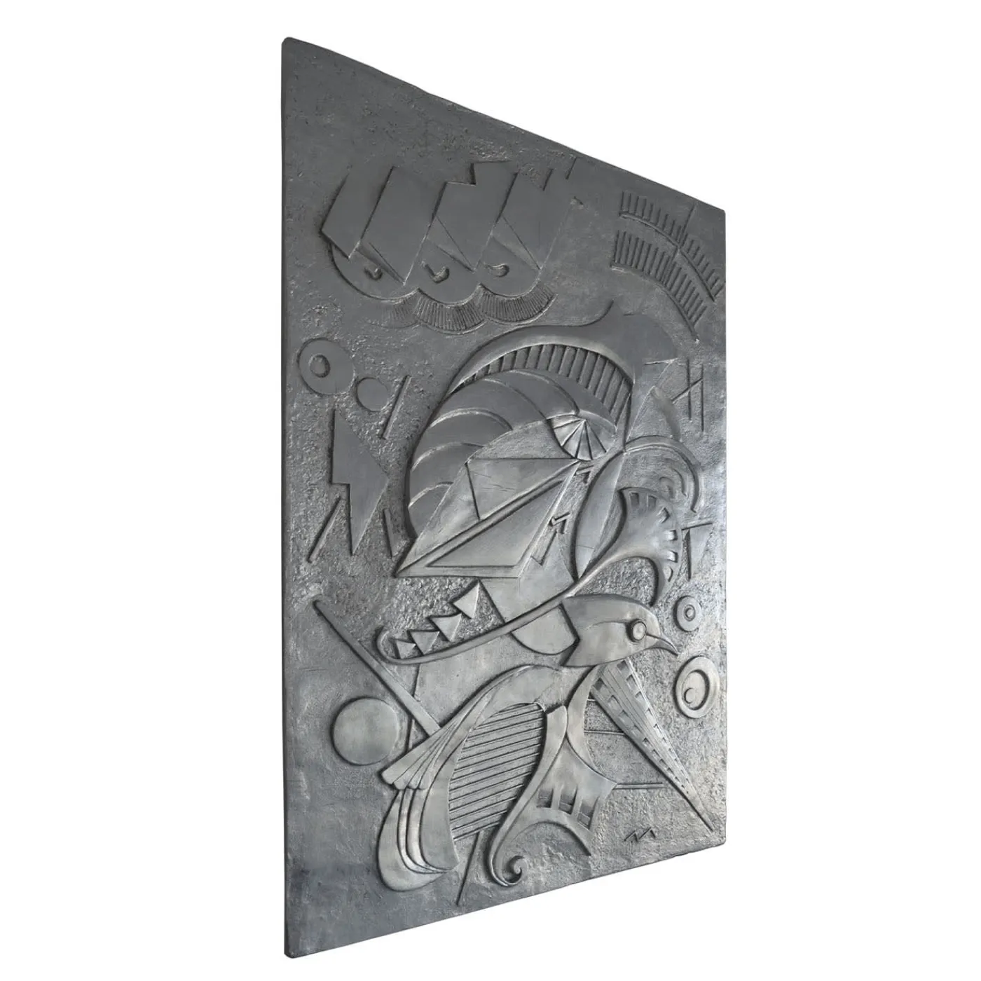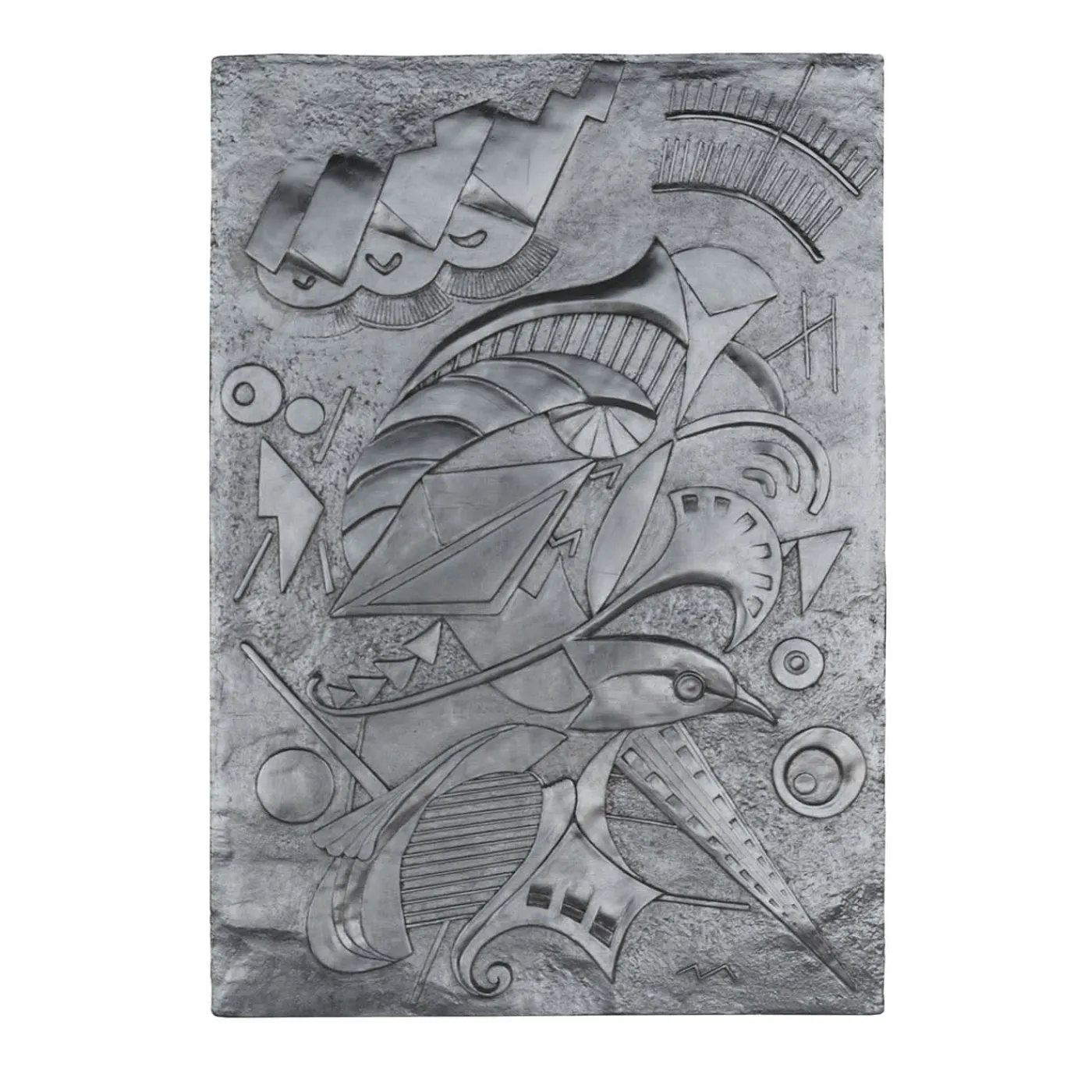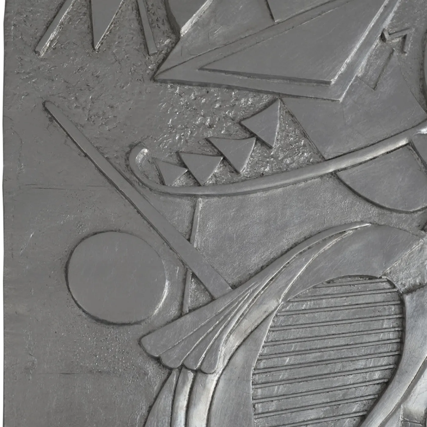 Questo pannello da parete si distingue per gli intricati dettagli in bassorilievo ispirati a motivi musicali, mostrando un sofisticato gioco di curve e motivi geometrici. Realizzato in selenite e impreziosito da una luminosa finitura in foglia d’argento, cattura la luce in modo splendido, conferendo profondità e dimensione alla sua superficie. Completamente personalizzabile in finiture come argento, rame o oro, questo pannello si trasforma in un pezzo su misura, perfetto come elemento di spicco in interni raffinati.