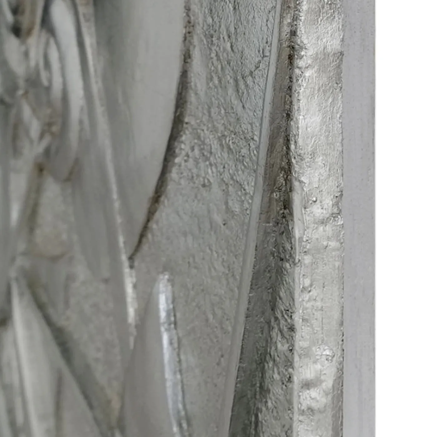 Questo pannello da parete combina intricati motivi geometrici e audaci forme astratte, rese vive da una sofisticata finitura in foglia d’argento. Il gioco di luci e ombre esalta le texture stratificate, creando un senso di profondità e movimento. Le finiture personalizzabili – disponibili in foglia d’argento, rame e oro – consentono di adattarsi perfettamente a qualsiasi interno. Questo pezzo fonde maestria e artigianato, aggiungendo una raffinata eleganza a spazi contemporanei e classici.
