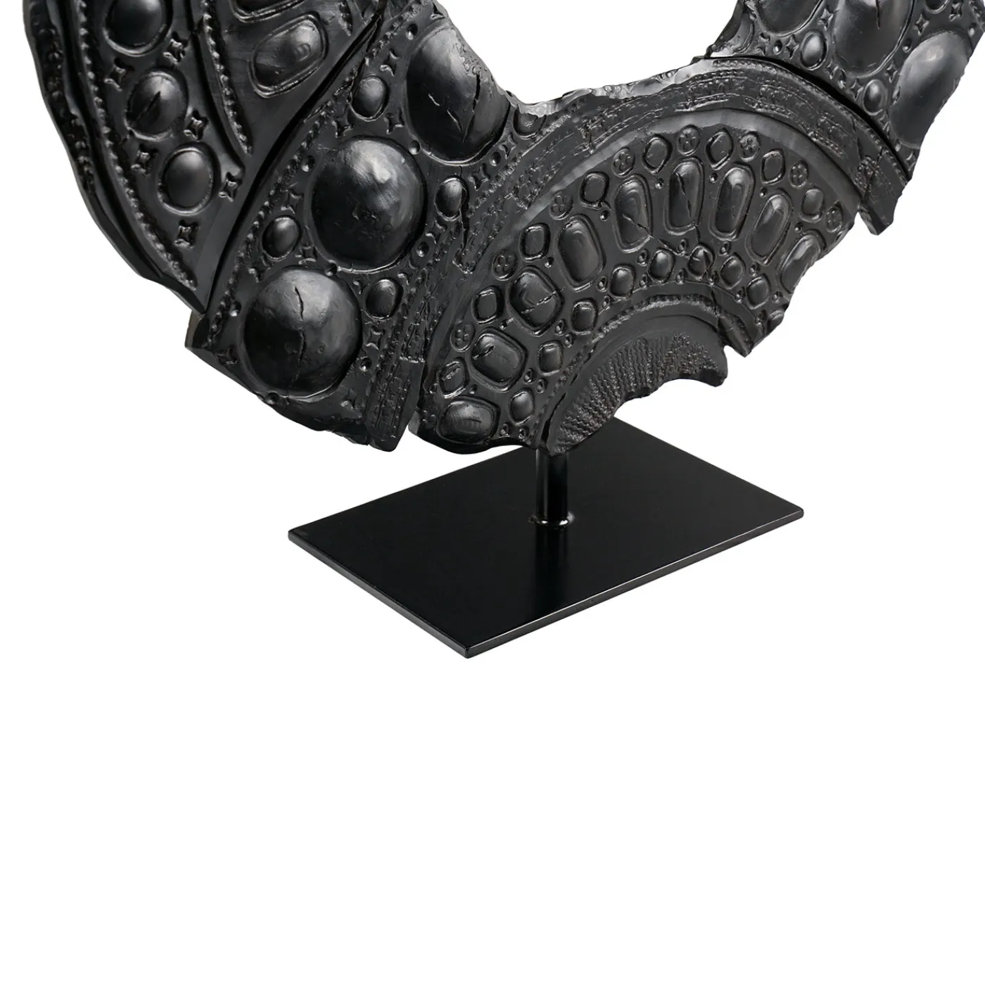 Néra è un’opera d’arte contemporanea caratterizzata da una forma circolare frammentata che unisce richiami arcaici a elementi futuristici. Realizzata con una tecnica esclusiva, la sua superficie irregolare interagisce con la luce generando ombre e riflessi in continuo movimento. La scultura è arricchita da rilievi geometrici, motivi sferici e dettagli in bassorilievo che evocano l’arte rinascimentale. Installata su un pedestal nero dal design minimalista, sembra sospesa nello spazio; in alternativa, può essere fissata direttamente a parete senza supporto.