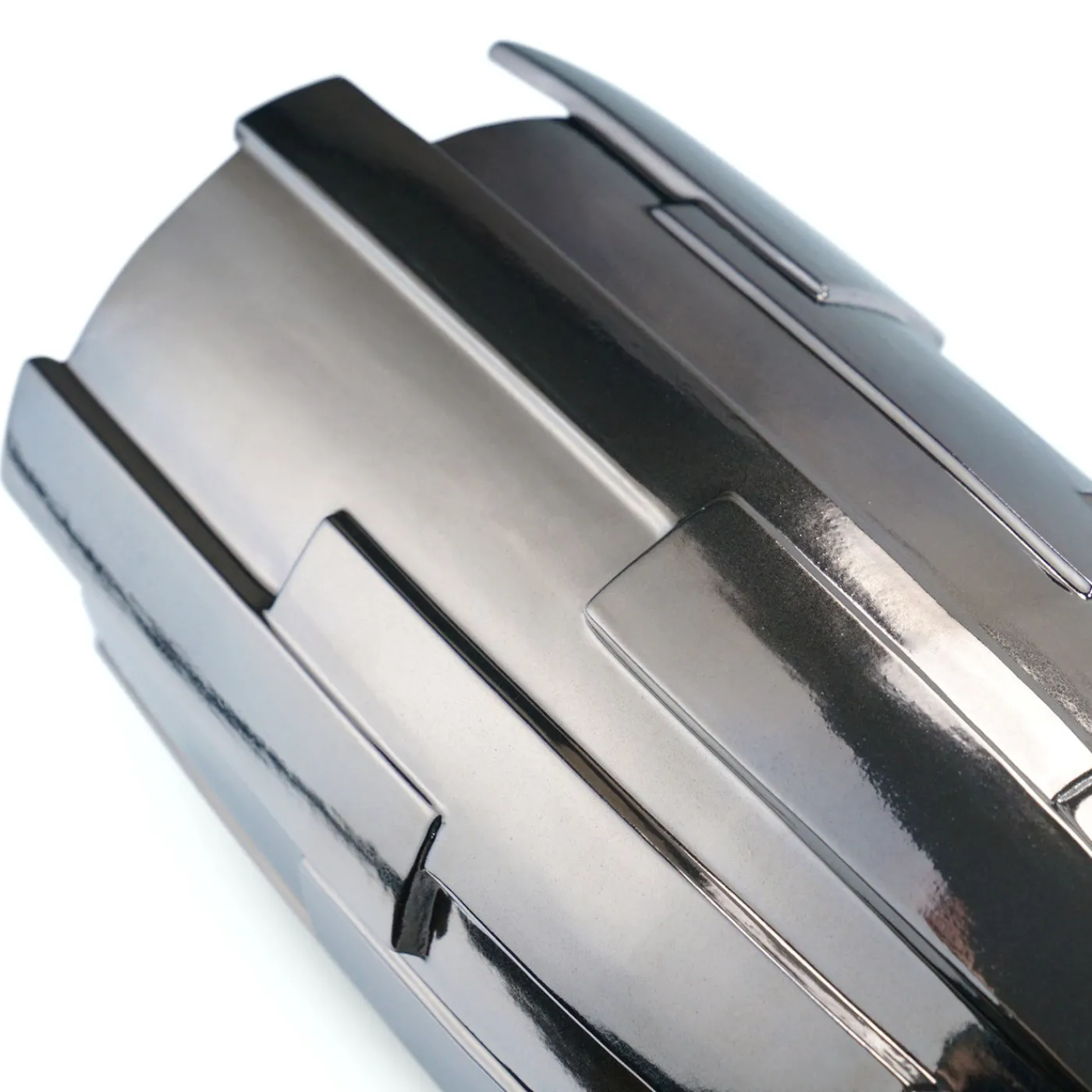 Il vaso Panoplia si distingue per un design scultoreo dinamico, caratterizzato da vuoti interconnessi e solidi sovrapposti che mutano con la prospettiva. La finitura in smalto ad alta temperatura conferisce una lucentezza speculare simile al titanio, donando un’estetica metallica ispirata alle armature. Audace e raffinato, questo pezzo bilancia forza e delicatezza, diventando un elemento decorativo unico. Ogni vaso presenta leggere variazioni che testimoniano la cura artigianale del processo.